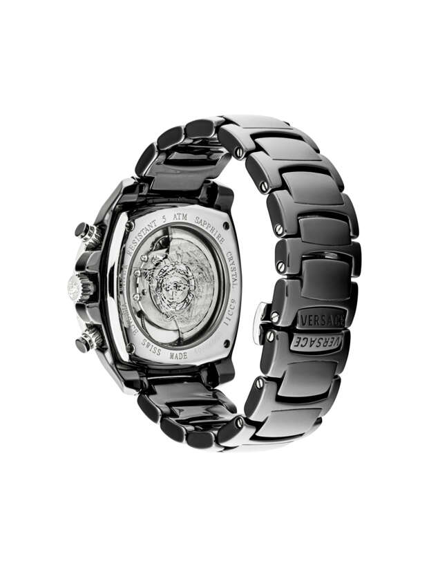 VERSACE, LADIES' CERAMIC, DIAMOND AND PINK SAPPHIRE-SET CHRONOGRAPH BRACELET WATCH, REF. 11CCM9
