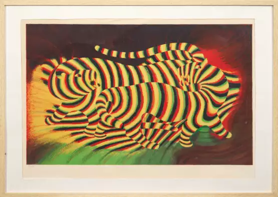 Farbserigraphie/Velin. Sign. und nummer. 54/120. Großformatiges Blatt des bedeutenden Op Art-Künstlers, der in den Jahren 1965 und 1967 zahlreiche internationale Kunstpreise gewann und Teilnehmer der ersten vier documenta-Ausstellungen 1955, 1959, 1964 und 1968 in Kassel war. Darstellung 44,5 cm x 67 cm. Rahmen.