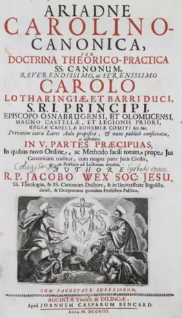 Sehr seltene erste, wohl einzige Ausgabe. - Gest. Front. mit einig. Quetschfalten, Vortit. lose, Tit. u. Anfang leicht fingerfl. im unt. Blattrand, sonst ordentliches, kaum stockfl. Ex. - Dabei: Eggs,G.J. Purpura Docta. Nur Band III. Mchn., Remy 1714. Hldr. d. Zt. - Fehlender Titel in Fotokopie.