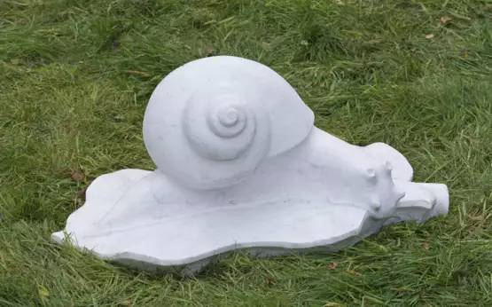 Heller Marmor. Vollplastische und naturalistische Darstellung einer Schnecke. H. ca. 26 cm. B. ca. 53 cm.