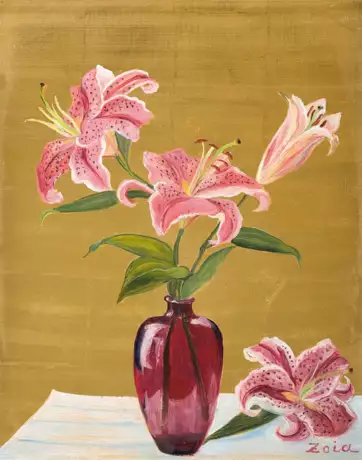 (1903 Moskau - Stockholm 1999). Stillleben mit Lilien. Öl auf Hartfaser. 40,5 x 33,5 cm. Unt. re. sign. Ger. - Min. Farbabsplitterungen. (A27)