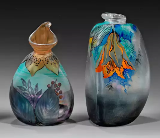 Two German "Eisch"- glass vases. Signed, monogrammed and dated.