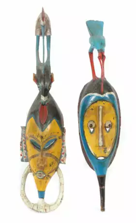 Los 2315  | Zwei farbig bemalte Masken der Guro Elfenbeinküste, Holz geschnitzt, t…