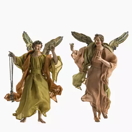 Terrakotta sowie Holz, geschnitzt, polychrom gefasst, Draht, Werg. Textilien. Rest., min. best. H. 34,5 cm bzw. 35 cm.