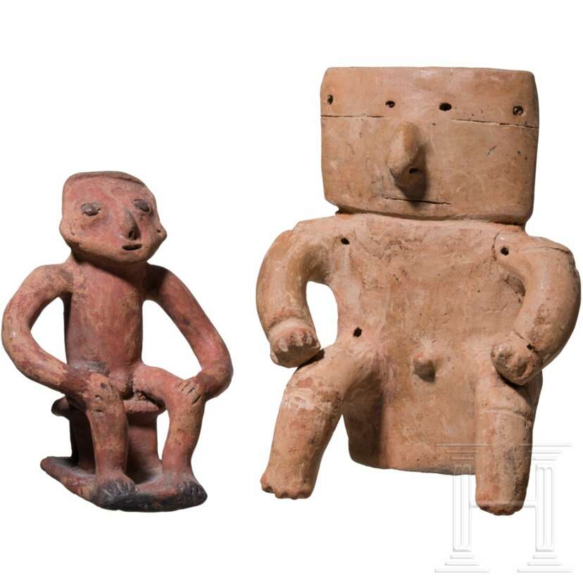 Los 82 | Zwei präkolumbische sitzende Tonfiguren, Kolumbien, Qimbaya-Kultur, wohl 1000 - 1500 n. Chr.