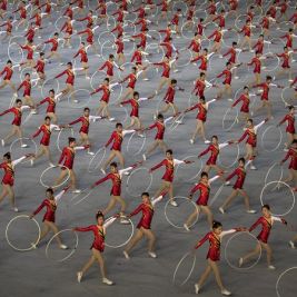 Der Tisch, die Straße vor dem Fenster, die schlichten Teppiche, die Ecke des Sofas, der Rand der Wanduhr - all diese Elemente betonen, dass Menschen nur wenig brauchen, um glücklich zu sein. Das Wichtigste ist ihre Liebe. Sie verwandelt den Raum und fügt lebendige Farben hinzu. Die Frau trägt ein schwarzes Kleid, während der Mann ein grünes Hemd trägt. Mit einem roten Boden und weißen Wänden herrschen scharfe Kontraste vor, ohne Schatten oder unnötige Details.