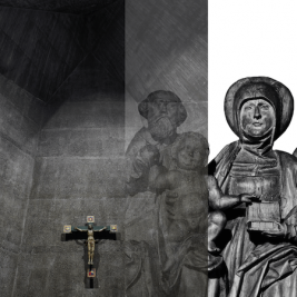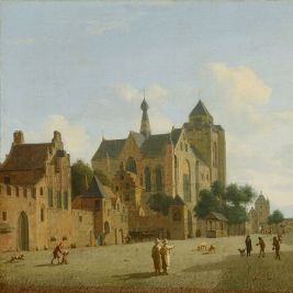 Der Künstler verwendete eine begrenzte Palette von braunen und grauen Farbtönen für sein Werk. Seine Figur steht auf Steinplatten neben einer Mauer, möglicherweise in der Vorhalle eines Tempels. Der obere Teil ist besser beleuchtet, daher betonte der Künstler das Gesicht, den Oberkörper und die Hände. Die Pose des alten Mannes ist frei, er bittet nichts von den Menschen um ihn herum. Doch sein forschender Blick verbirgt die Frage: "Könnt ihr mir mehr geben, als ich habe?"