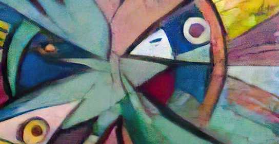 Monogrammist "Abstrakte Komposition mit Gesichtern", Öl/ Lw., monogr. "MB 68" (wohl Morgens Balle (1921-1988, Dänemark), Künstlergruppe "Cobra", 97,5x97,5 cm, Rahmen…