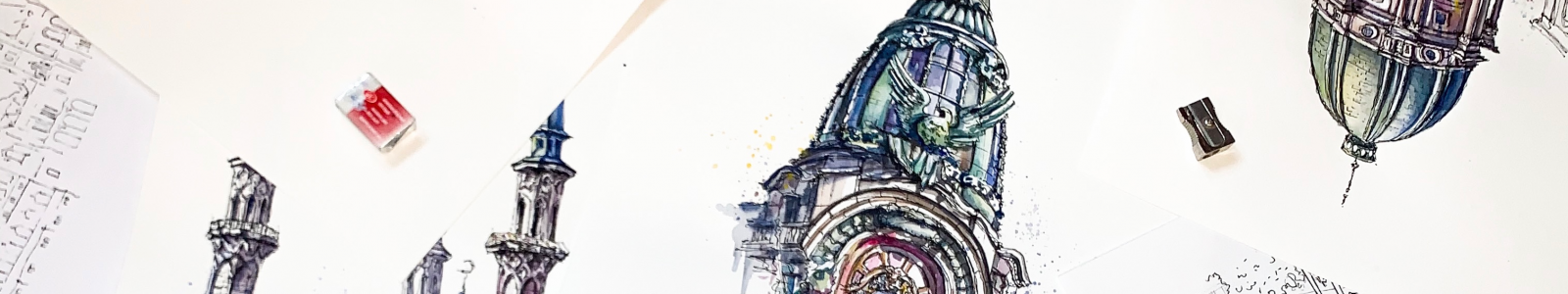 Вера Коробейникова работает в смешанной технике туши и акварели.