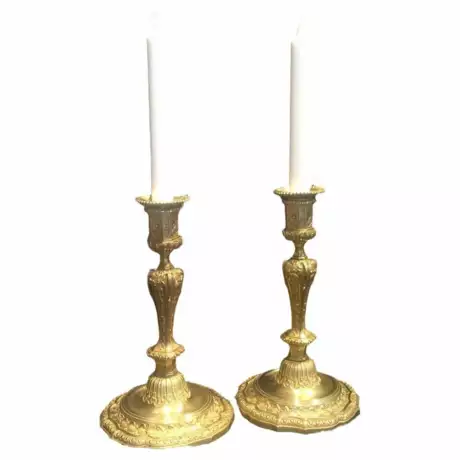 19th Century Pair of Gilded Bronze Transition Louis XV Style Candle Holders Bronze Napoleon III 19th century