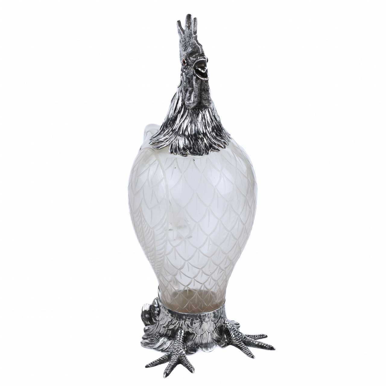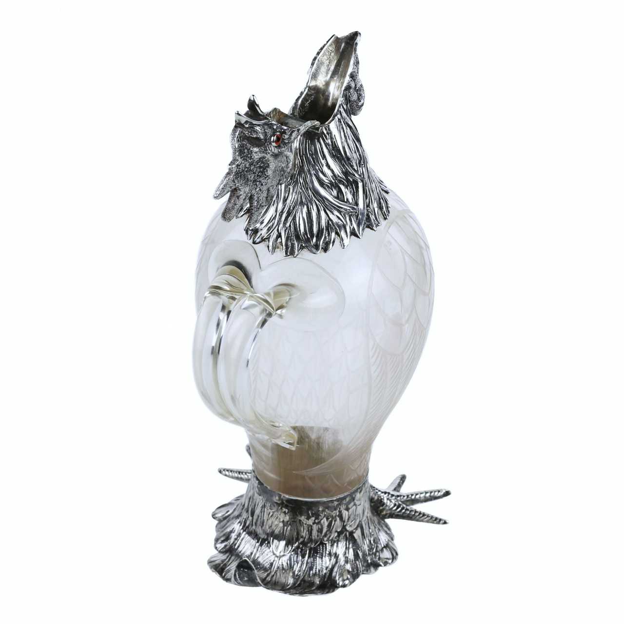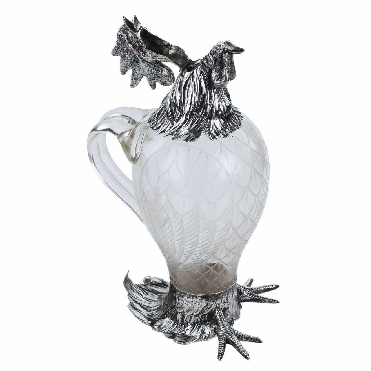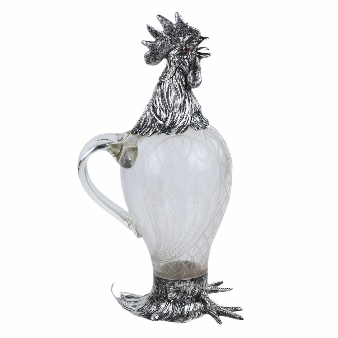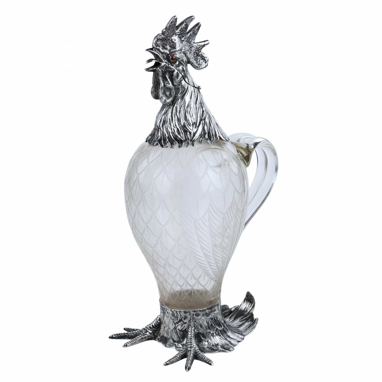 GLASS AND SILVER ROOSTER-FORM JUG. HANAU J.D. SCHLEISSNER SÖHNE. LATE 19TH CENTURY Silver Glass Romanticism Late 19th century