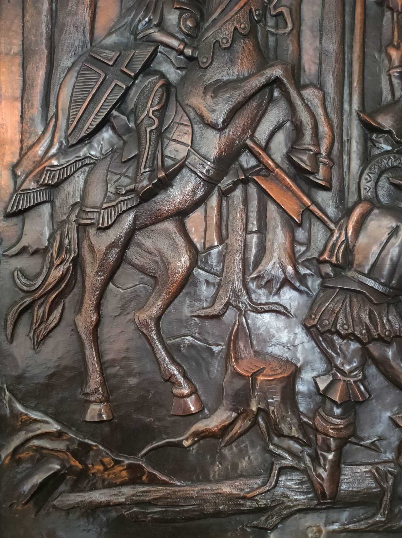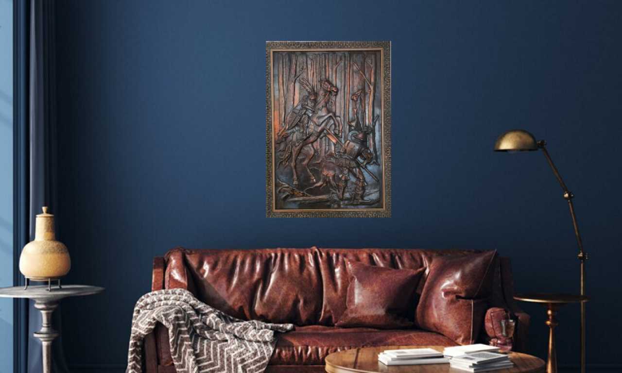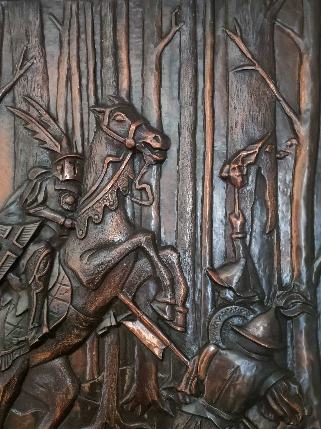 Картина по мотивам репродукций литературного произведения В.Скотта. "Айвенго" .Картина изготовлена из целого медного листа. Использованы приёмы металлопластики ,торевтики и чеканки. Ювелирная проработка мелких деталей. Проведено патинирование и полировка. НЕ ГАЛЬВАНОПЛАСТИКА!! Ручная работа!