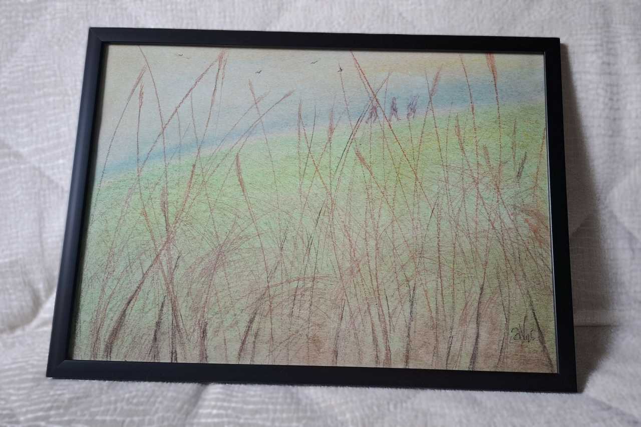 Графика пастелью и сангиной на картоне А3 оформлена в черную металлическую раму за акриловое стекло