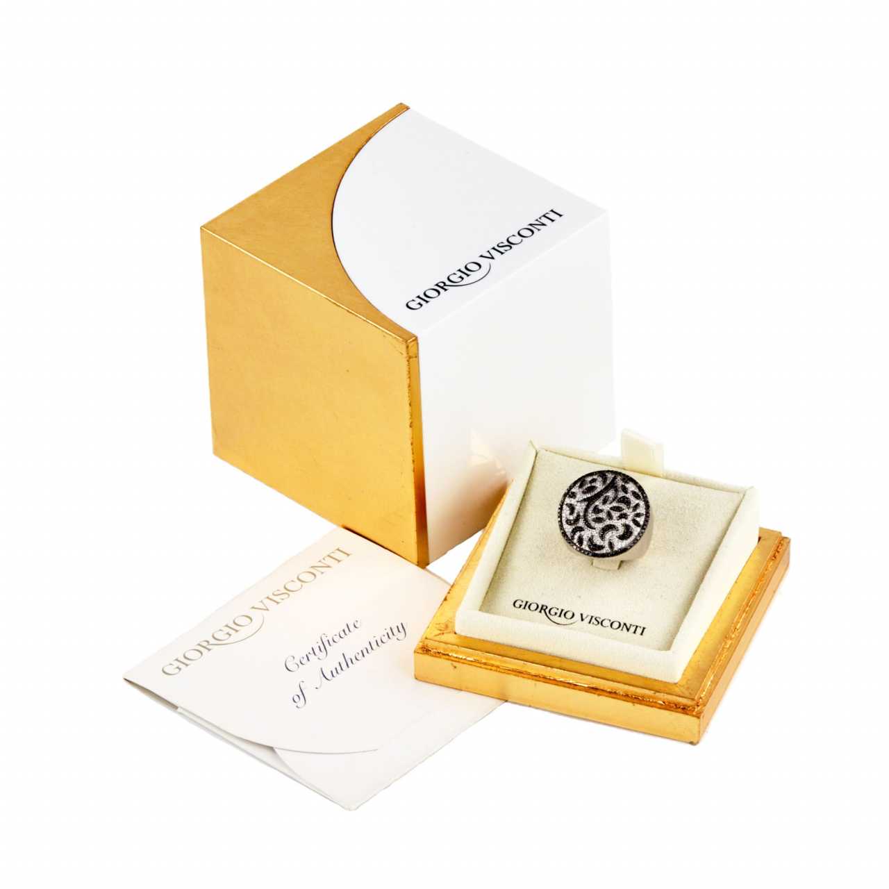 750 Giorgio Visconti gold ring with diamonds. Black diamonds: 0.54 carats. White: 0.54 carats. Total weight: 19.10 gr. Original packaging and certificate included. 2017