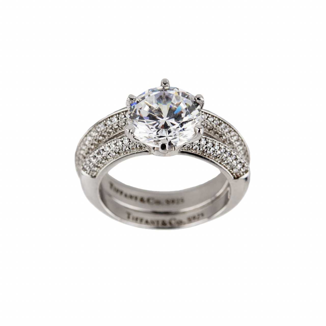 Double silver ring with brilliant cut zircons. Silver 925 20th century
