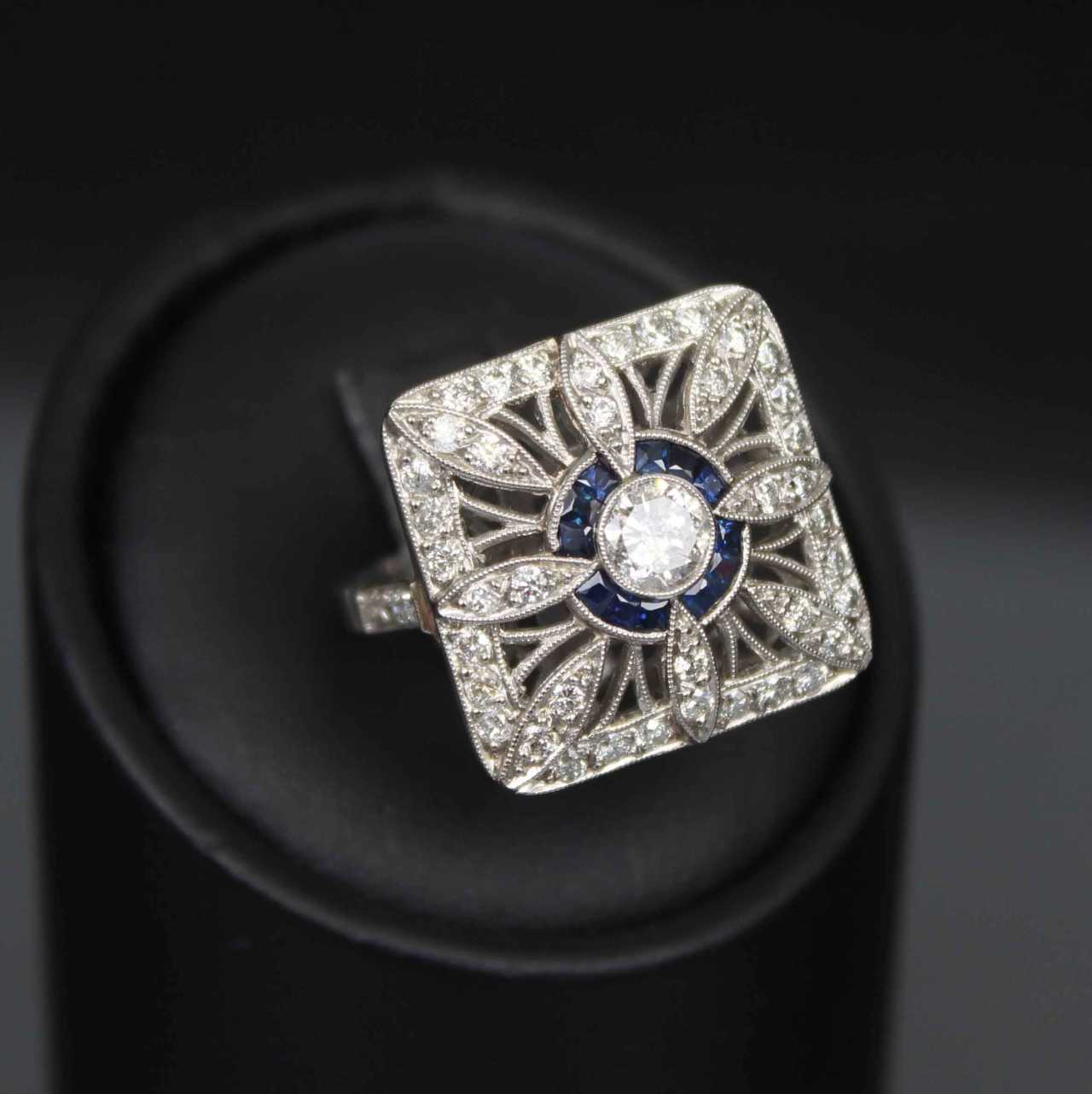 Gold ring with diamonds and sapphires Gold Other style 21th century