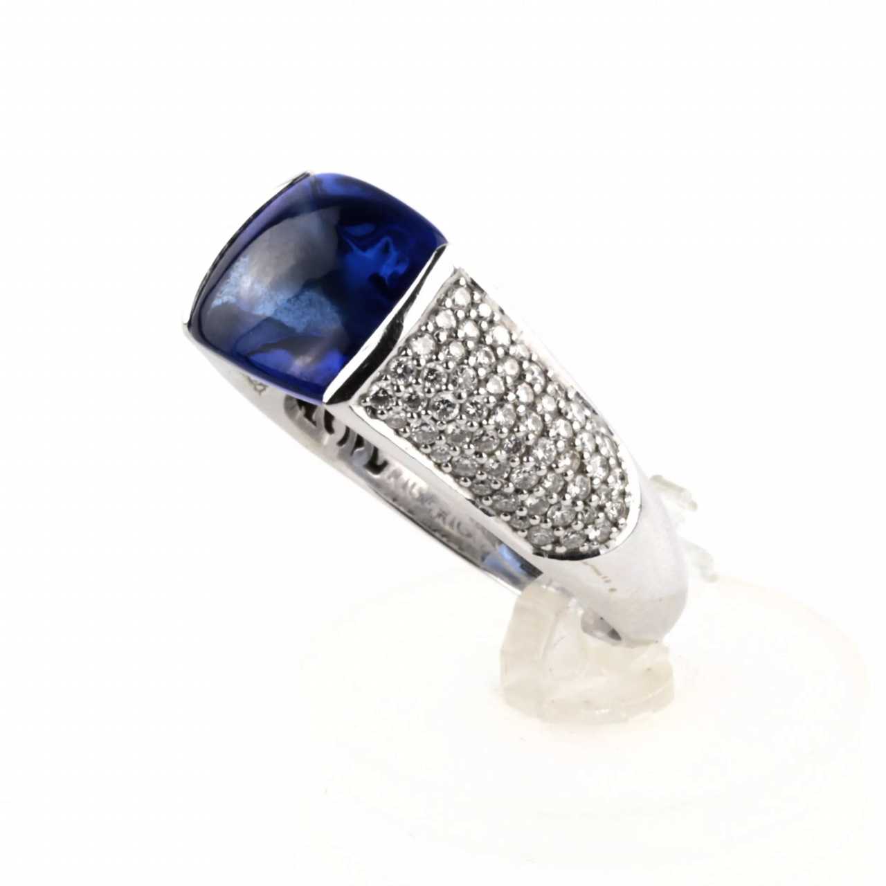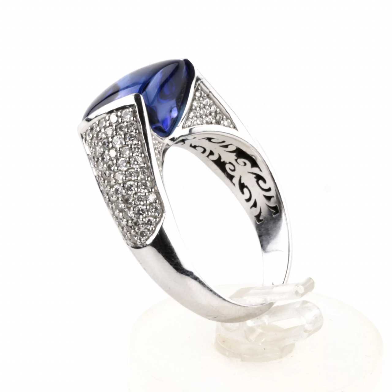 18K white gold ring with diamonds and tanzanite. Diamonds 21th century