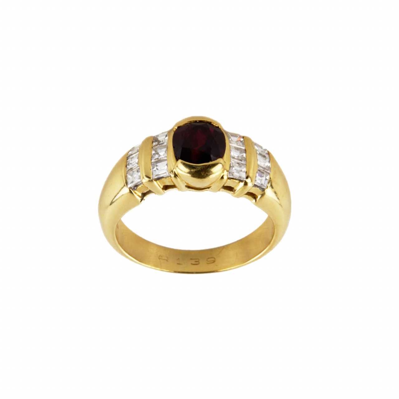 Moraglione gold ring with ruby and diamonds. Diamonds 21th century