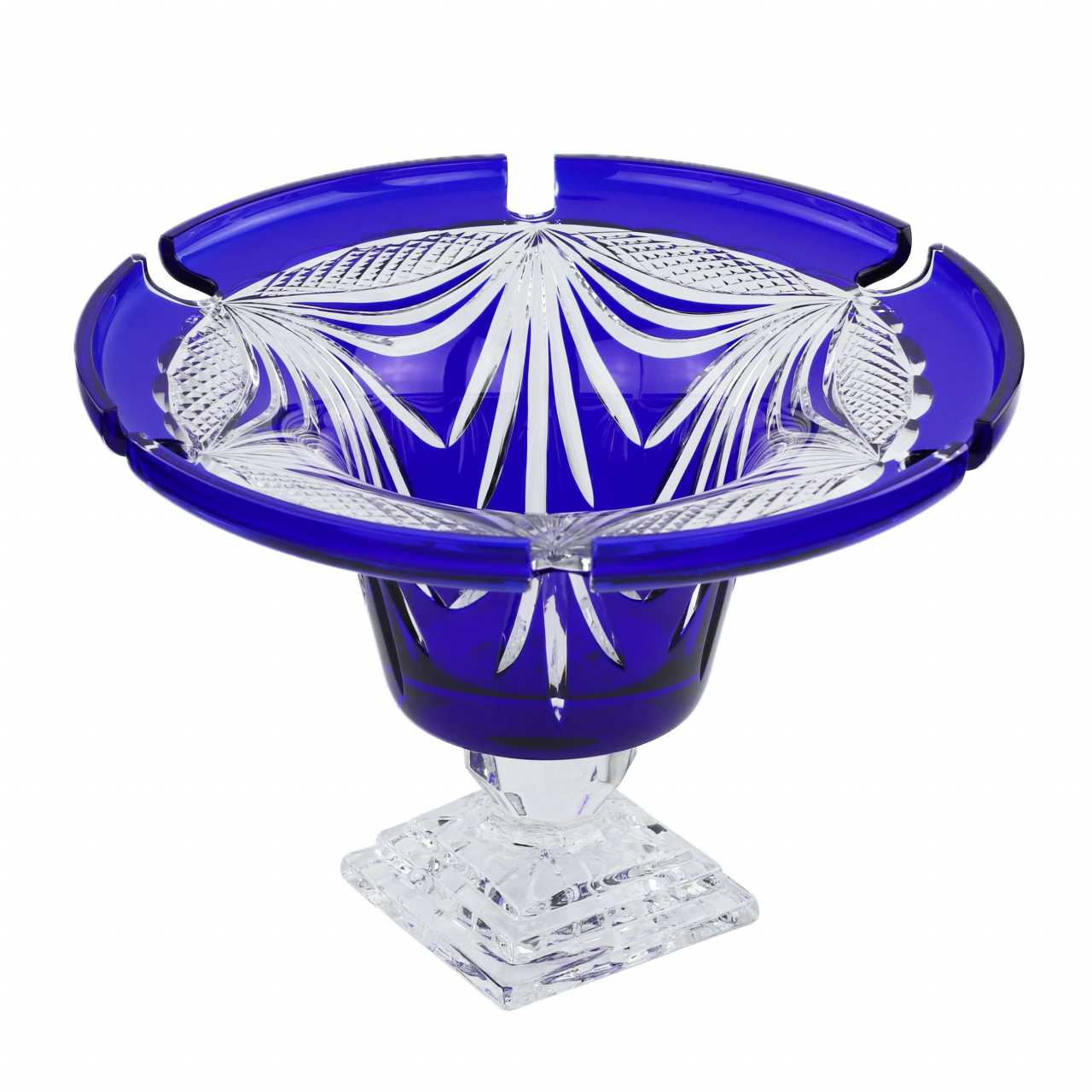 An elegant two-tone crystal bowl, made by blowing and complemented by hand cutting. An elegant centerpiece of the table, designed for serving six glasses and a decanter or fruit. A magnificent example of collectible decorative art. The product is signed and numbered, model GERARD, which confirms its exclusive status and high quality of execution. Dimensions: Height: 26 cm. Diameter: 35 cm. Condition: In excellent condition.