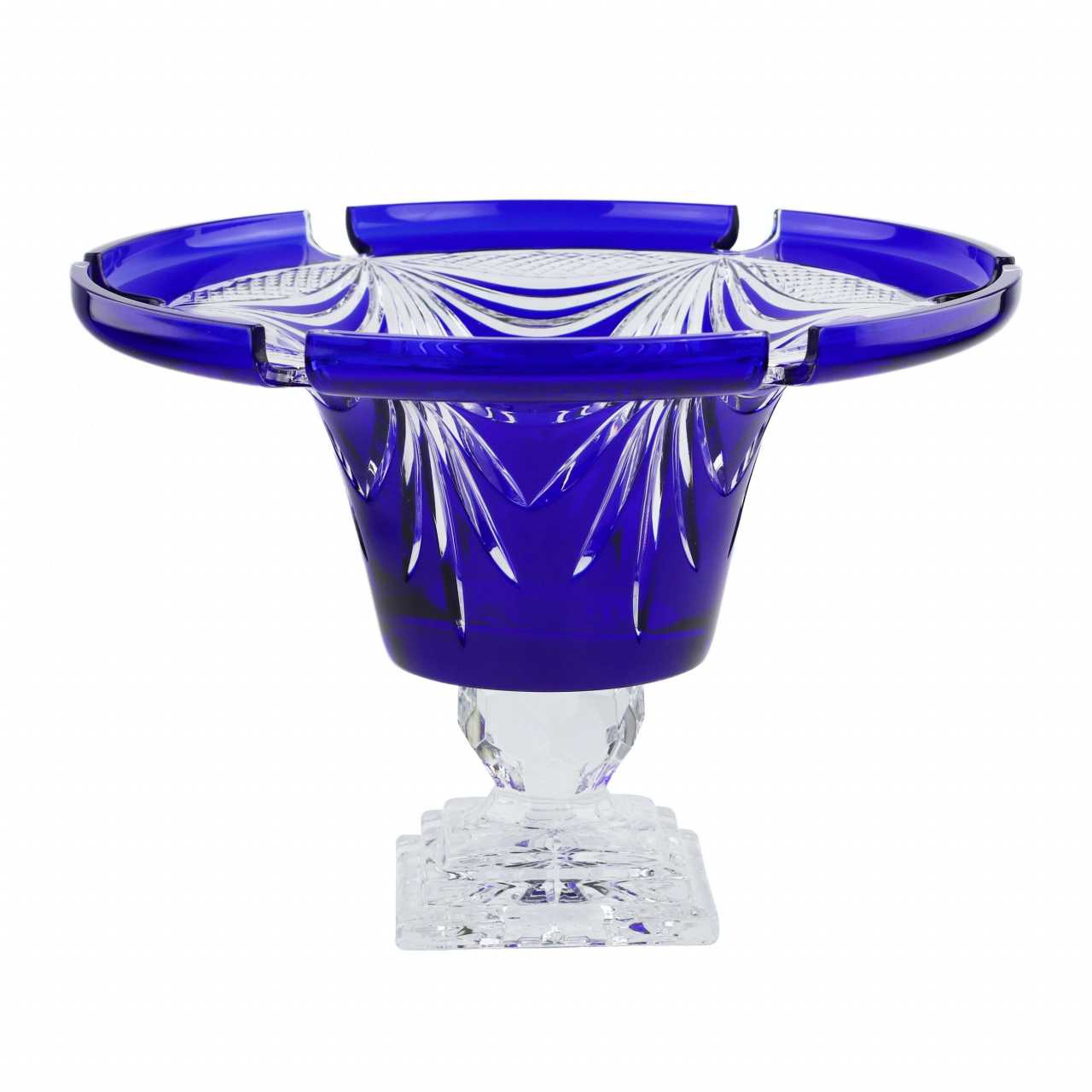 An elegant two-tone crystal bowl, made by blowing and complemented by hand cutting. An elegant centerpiece of the table, designed for serving six glasses and a decanter or fruit. A magnificent example of collectible decorative art. The product is signed and numbered, model GERARD, which confirms its exclusive status and high quality of execution. Dimensions: Height: 26 cm. Diameter: 35 cm. Condition: In excellent condition.