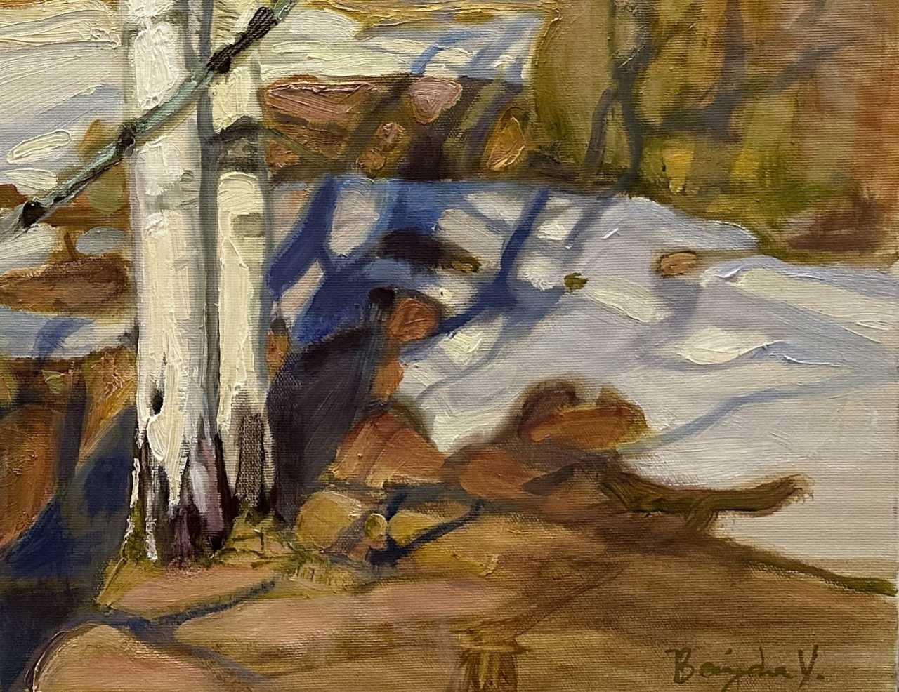 Author: Valery Baida, Birches, oil on canvas, size: 60 x 70 cm, year of 2023