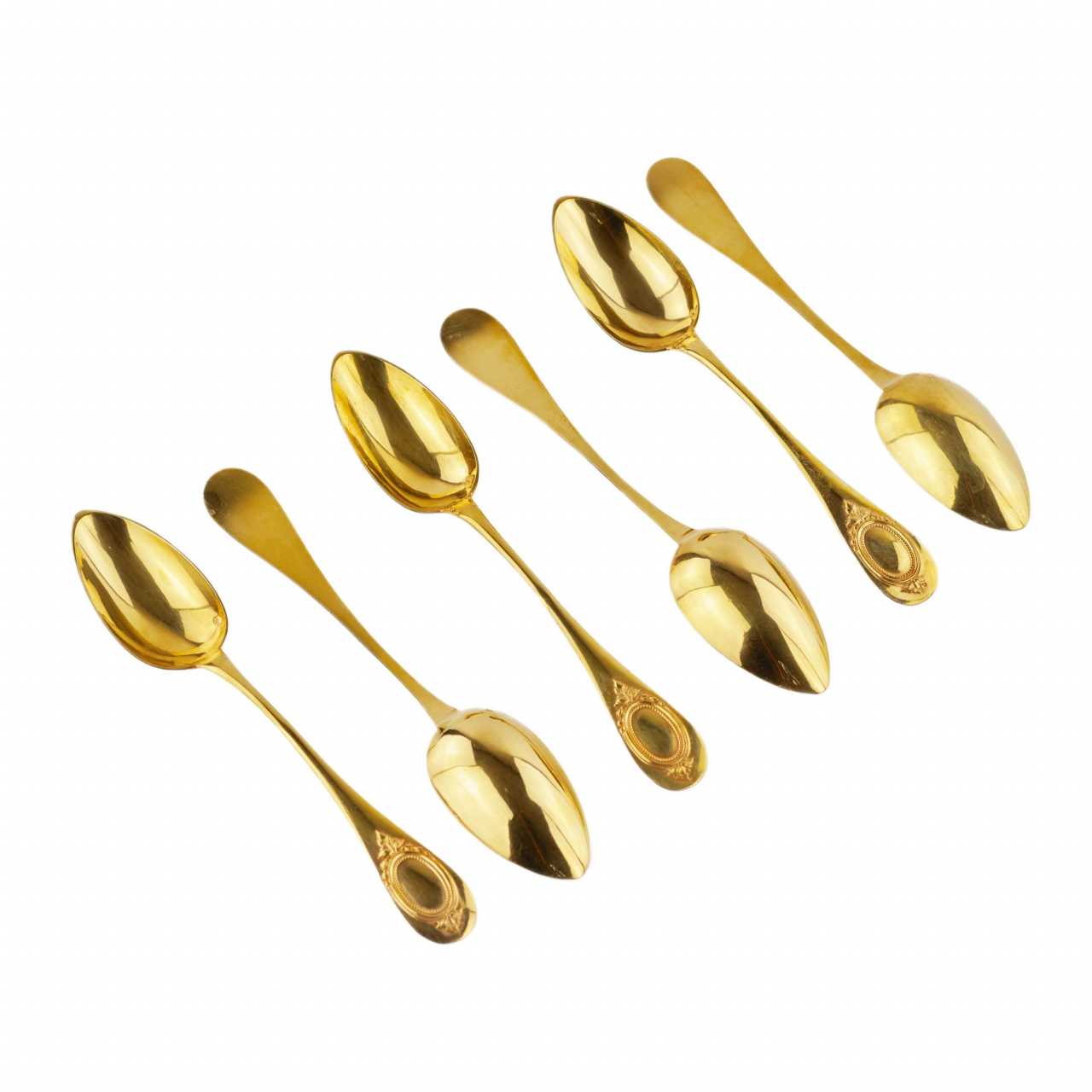 Set of 6 silver gilded teaspoons in the original Boulle box. France. Turn of the 19th and 20th centuries. Silver gilding At the turn of 19th -20th century