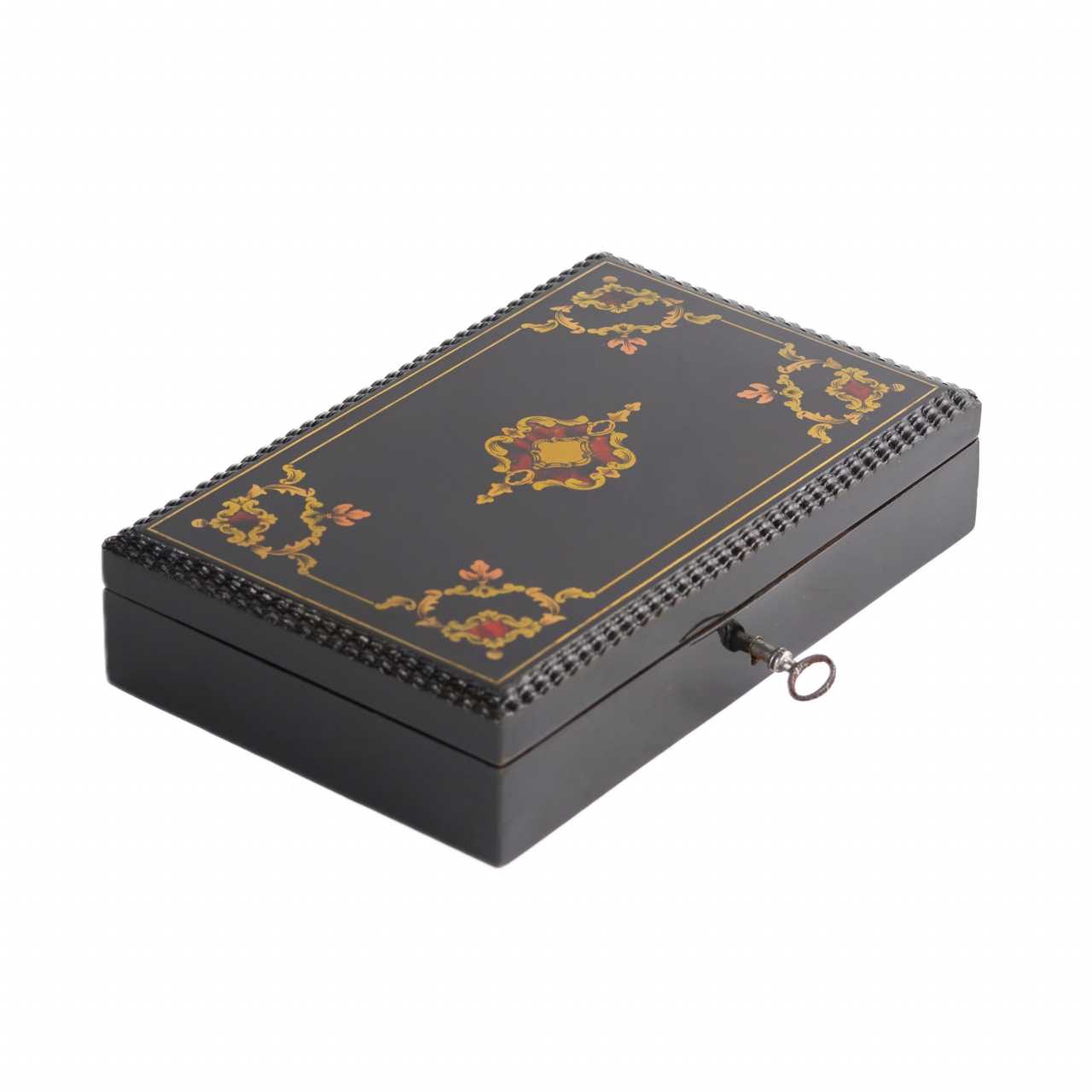 Set of 6 silver, gilded Louis XVI style teaspoons, in original Boulle style box. France. The turn of the 19th and 20th centuries. Turnkey ebony case with marquetry, gilded brass and tortoiseshell decor. On the spoons are French silver hallmarks of 800: the head of Minerva. Spoon length - 15 cm. Total weight of spoons: 98 gr.