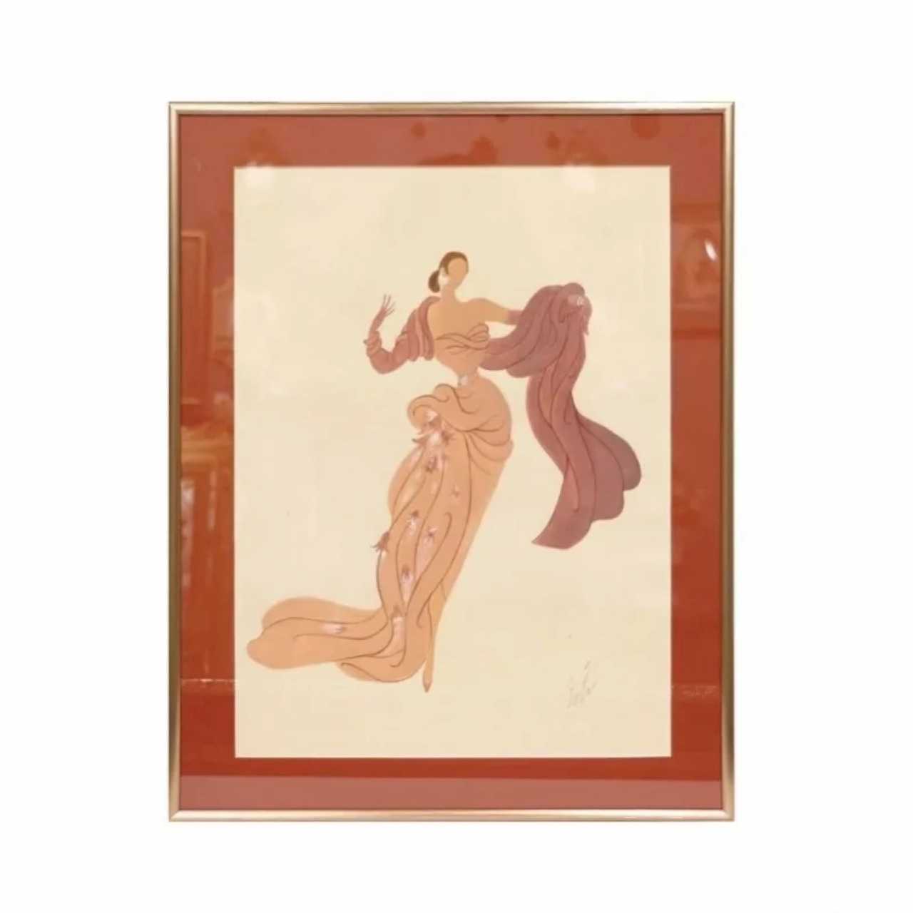 Drawing from the Stage Costumes series. Mixed graphic technique. Installed in a frame under glass. Pencil signature: Erte. Unframed size: 41 x 30 cm.