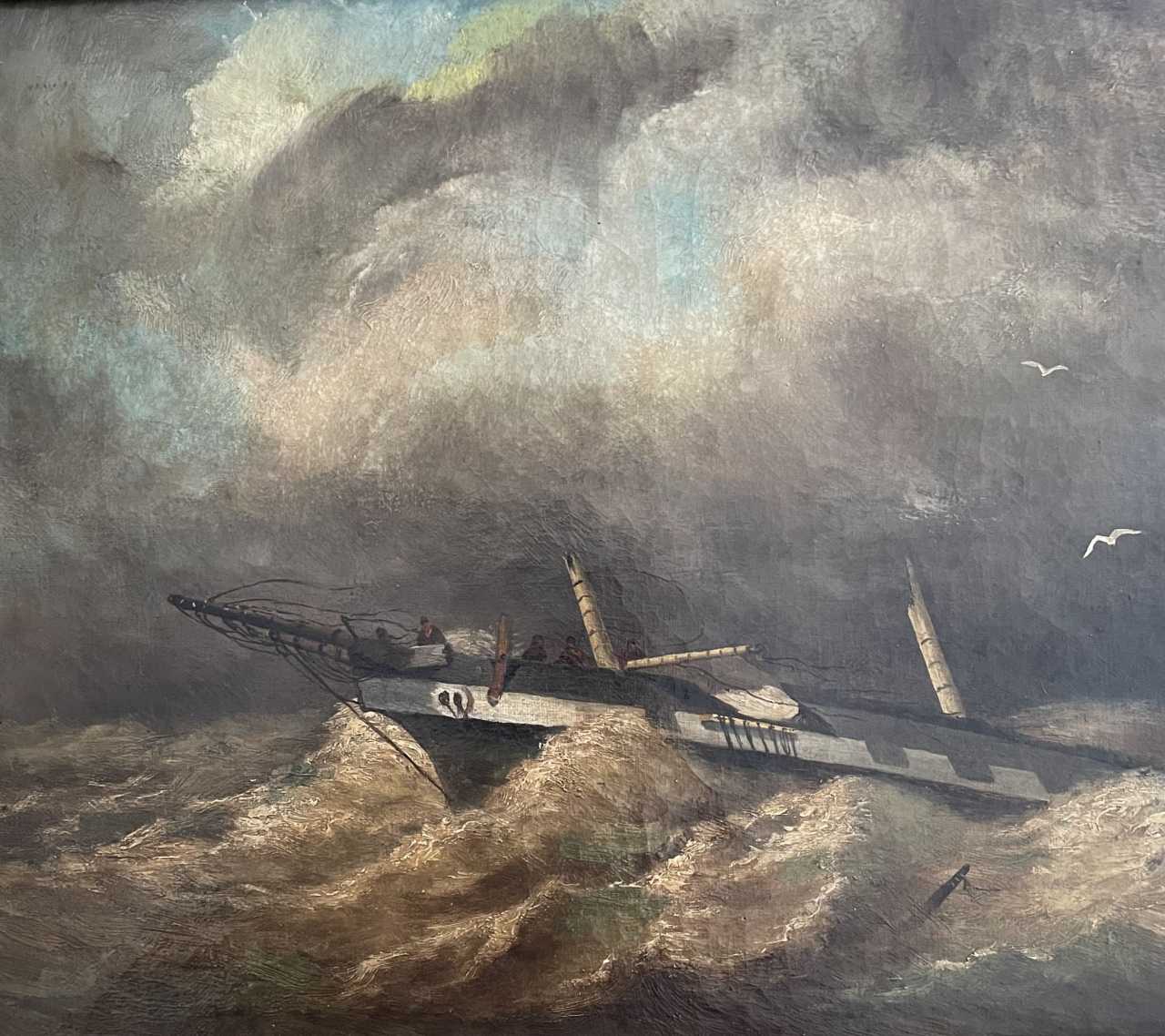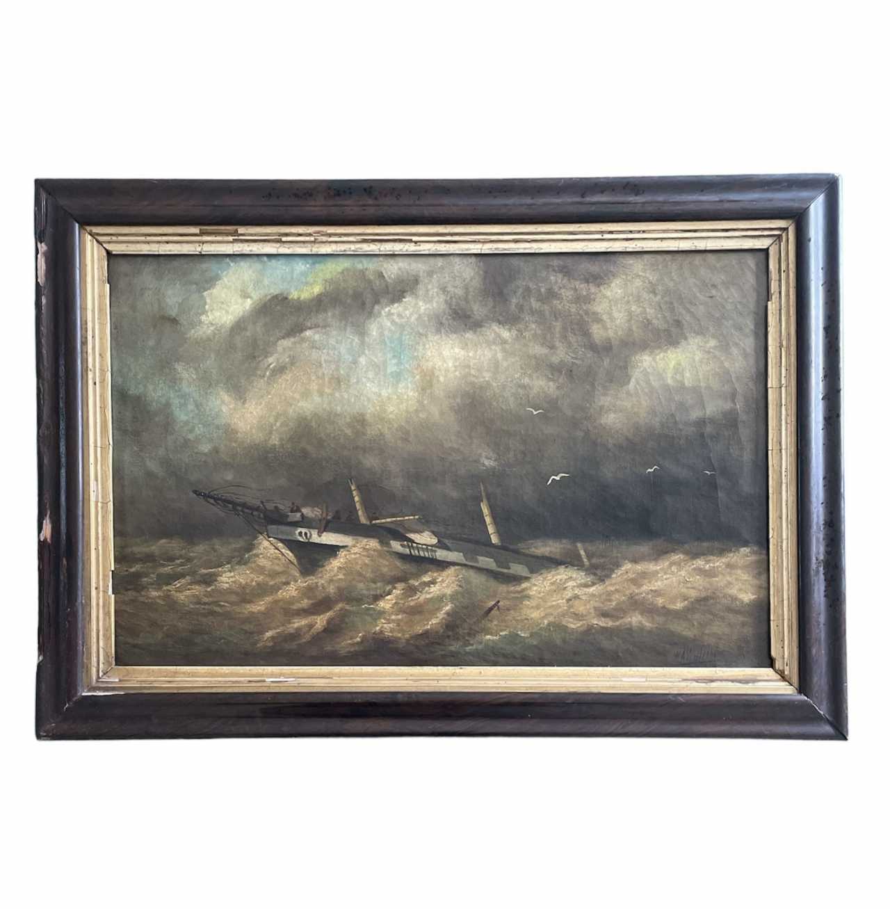 German School Oil on Canvas Scene of a Shipwreck Indistinctly Signed Dated 1840. oil painting realism 19th century