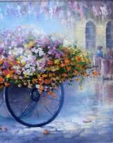 Картина "Лилии".Написана в технике пастозная(объемная )живопись,с использованием мастихина.Картина выполнена в сложных пастельных ,но в то же время-звонких тонах,что придает ей особое звучание и благородство.