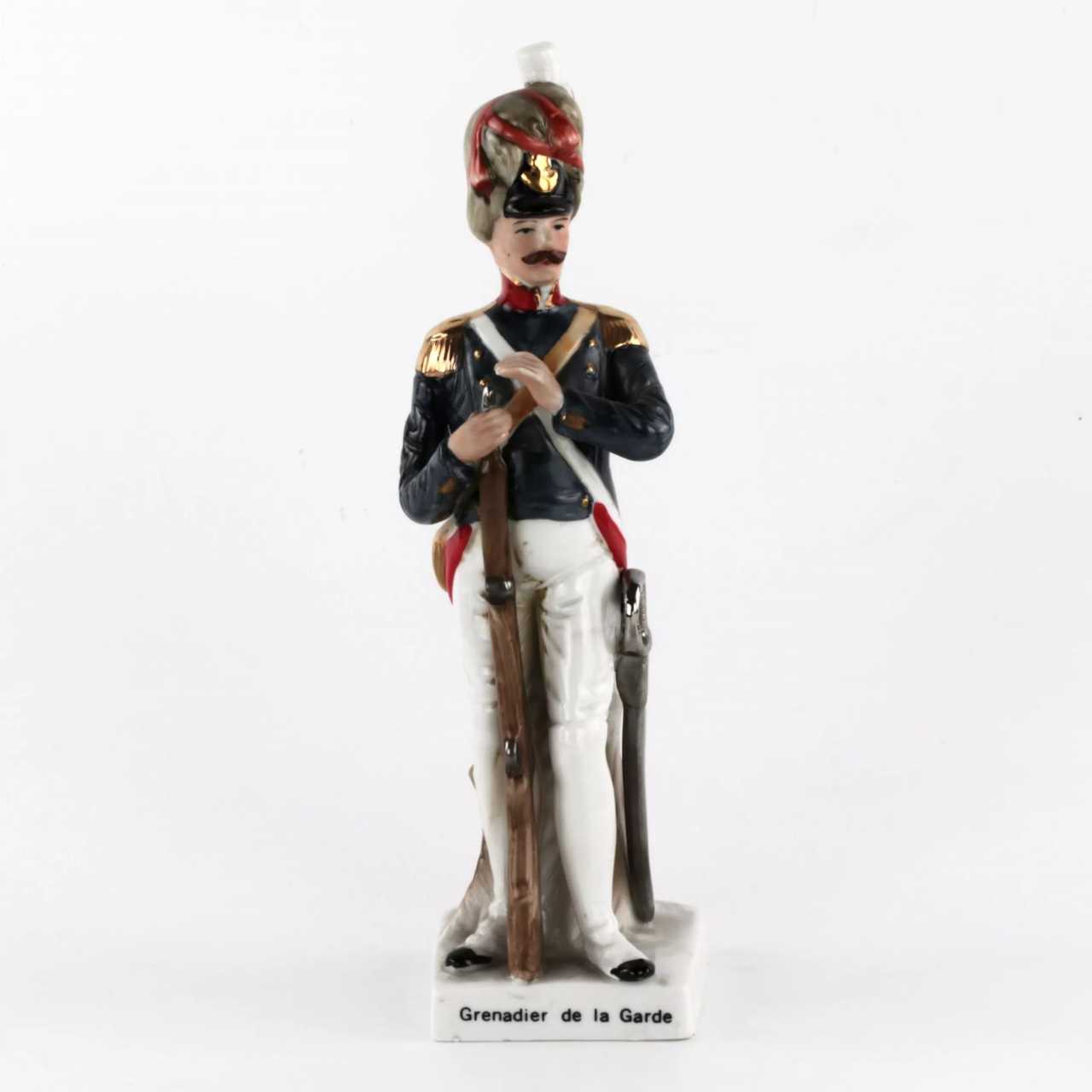 Porcelain figurine of the grenadier of the imperial guard Soldier Grenadier De La Garde. H-24 cm. Germany. 20th century.