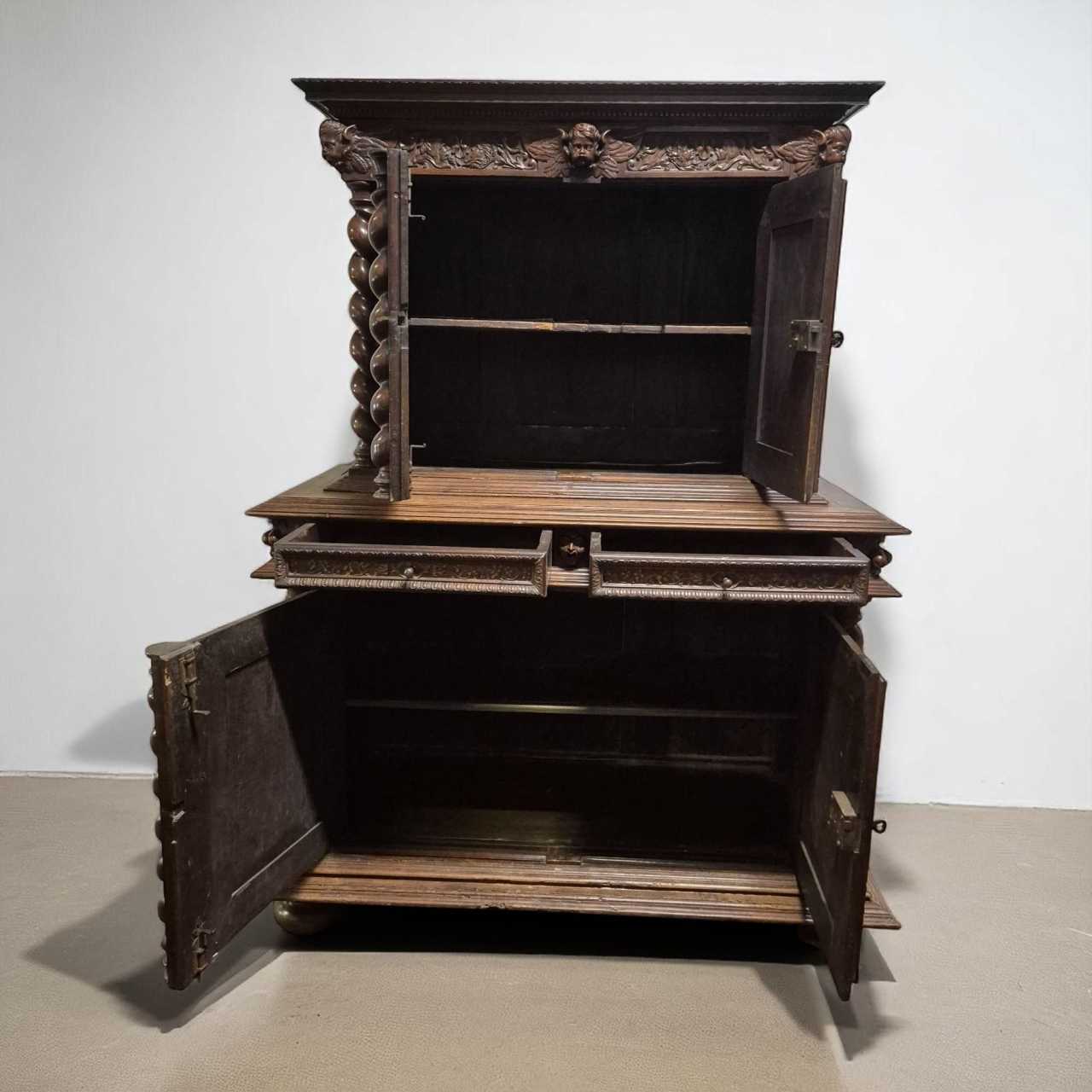 French Renaissance Revival Carved Oak Buffet à Deux Corps 19 Century Wood 19th century