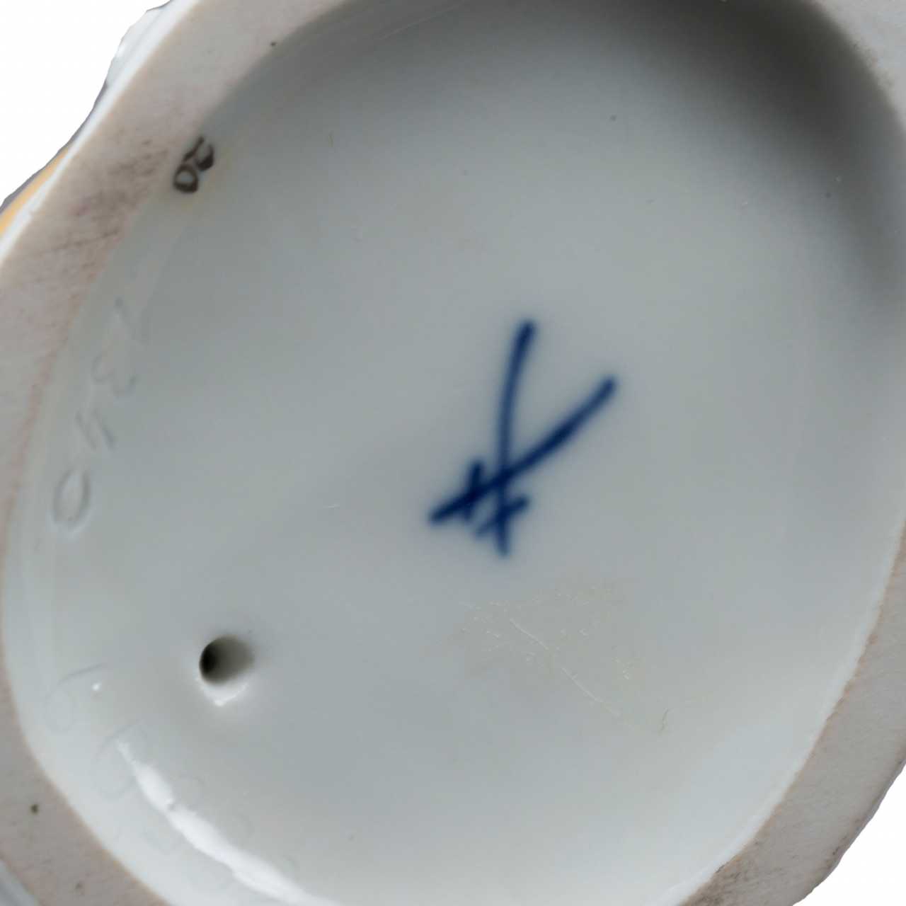 Porcelain figurine of a Boy with flowers. Makers hallmark Meissen is a brand of German porcelain. The name comes from the Saxon city of Meissen, where porcelain began to be produced for the first time in Europe. The first porcelain manufactory in Europe, Meissen, was founded in 1710, shortly after the discovery of the secret of making hard porcelain in Saxony by the alchemist Johann Friedrich Böttger (1682-1719) in collaboration with the scientist Ehrenfried Walter von Tschirnhaus (1651-1708)