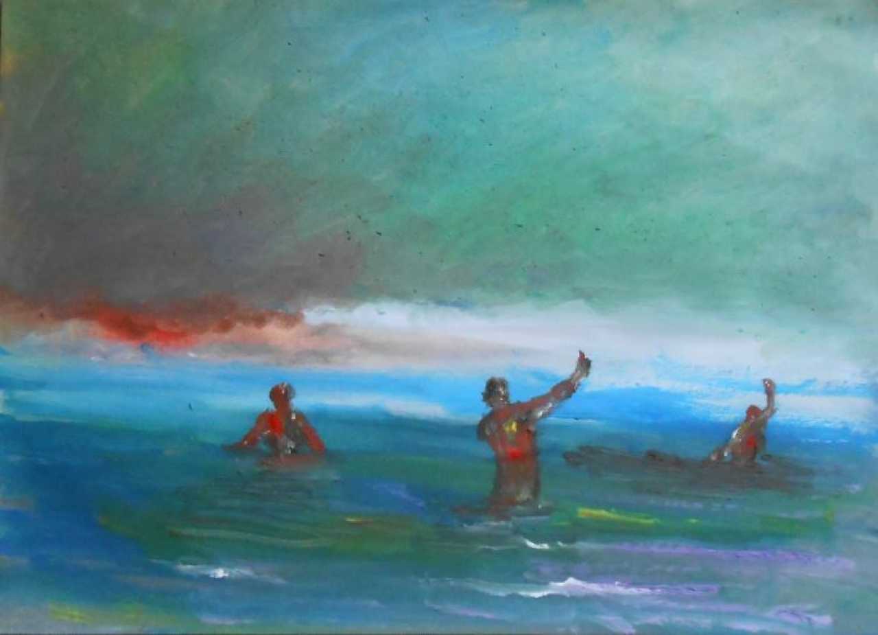 Купание в шторм Paper Mixed media Абстрактный субъективизм Story-themed picture