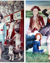 Work is performed on water color paper by water color paints and colored pencils.