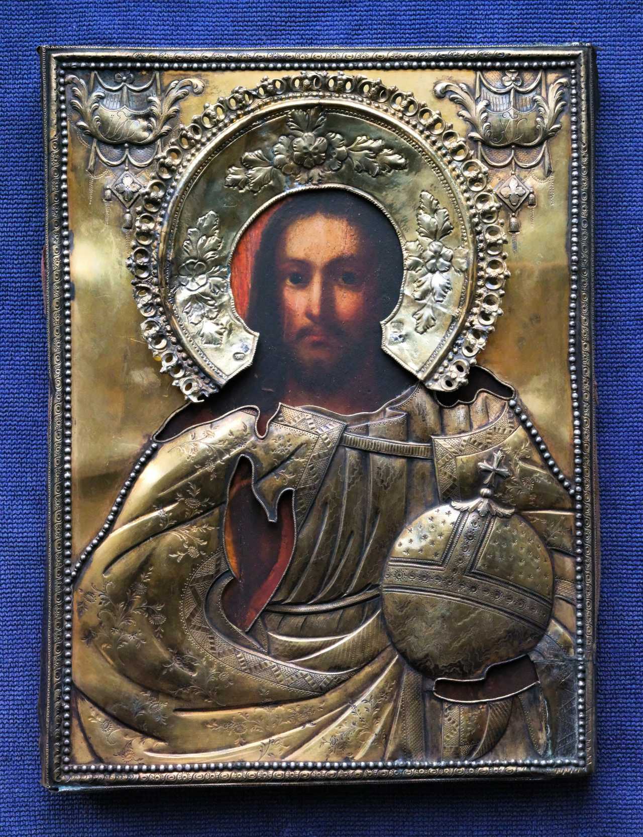 Икона Спасителя в серебряном окладе мастерская "НМ" Мастер "НМ" Levkas Tempera XVIII век Russian Empire XVIII век 1791