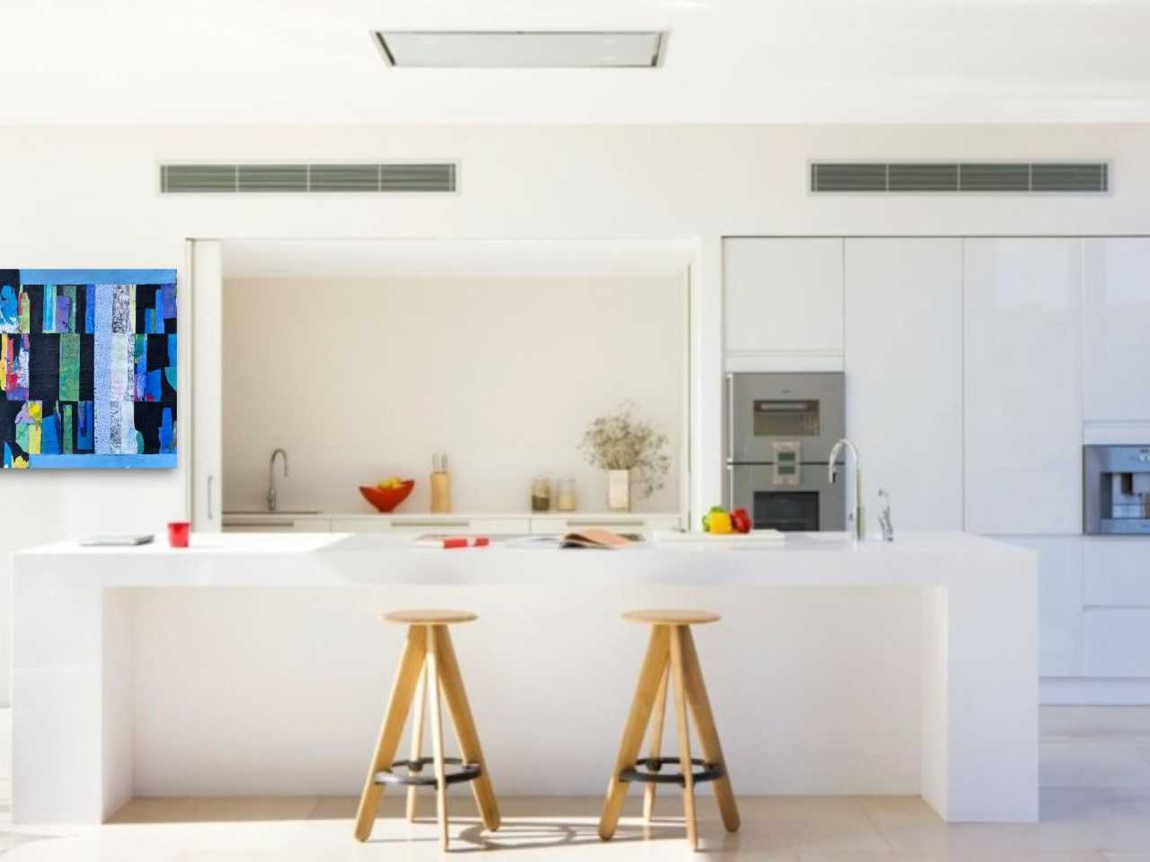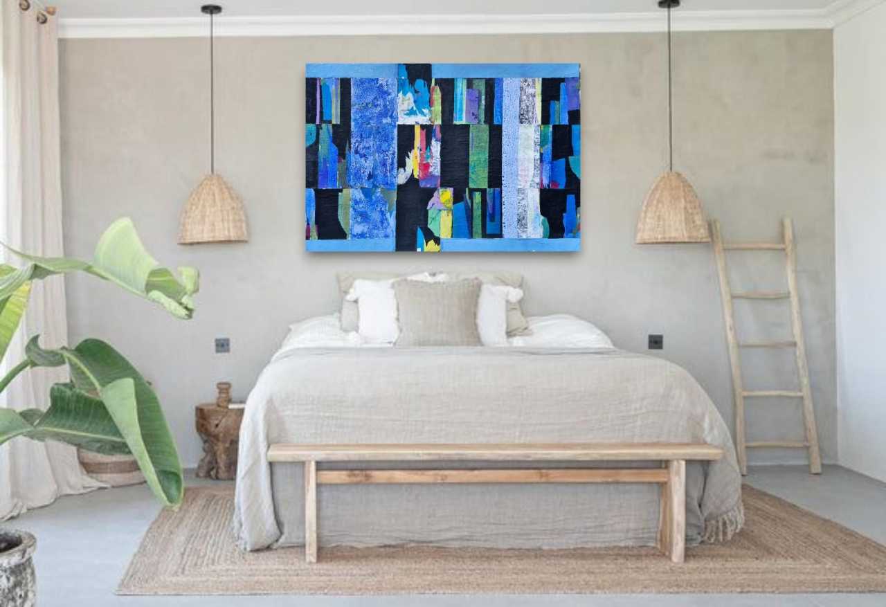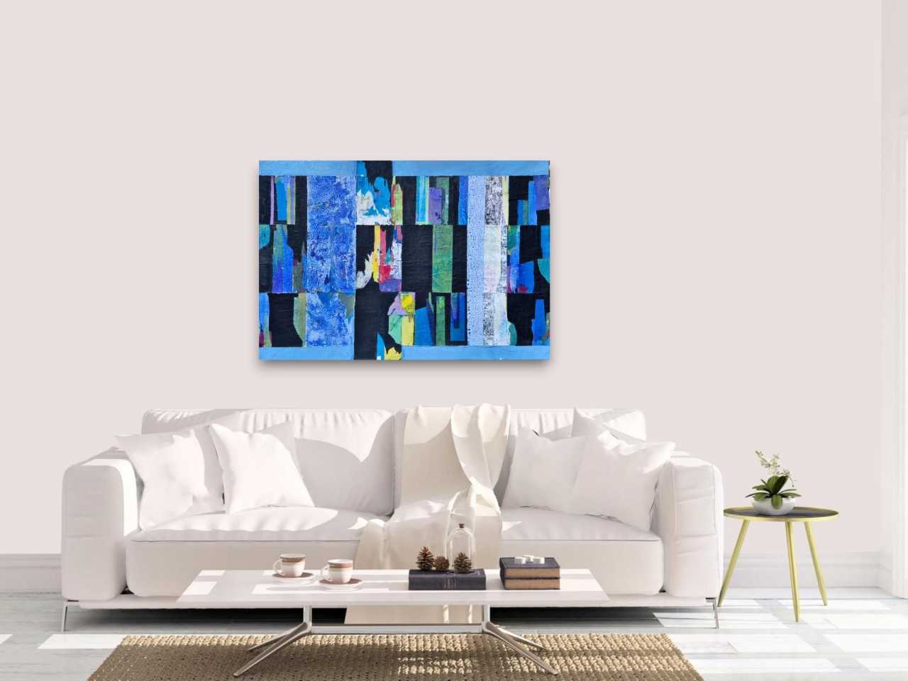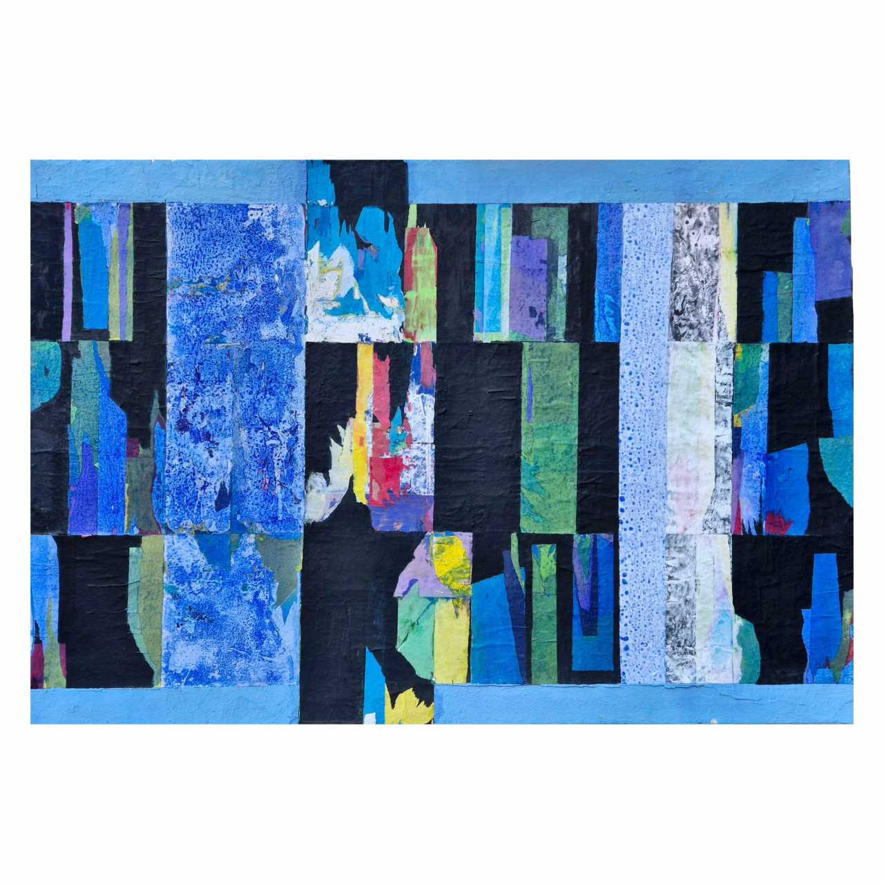 Jacques Lavigne was born in France in 1937. After a career as a geologist in North Africa, he moved to Paris in 1962. He discovered painting through Jean-Michel Meurice, one of the founders of the Supports-Surfaces group. Fascinated by Simon Hantaïs folding work, inspired by Matisses cut-outs and influenced by Jacques Villeglés lacerations, he embarked on a colorful creative process in which tearing became the primary element of construction.In 1977, he left Paris for the Luberon before settling in Antibes. His artistic output then diversified, and in 1995 he resumed his paper collage work with tears already practiced a few years earlier in Paris.Since then, he has held a series of exhibitions across France, and his works, imbued with Mediterranean blues and kinetic reflections, have won over collectors as well as those wishing to adorn their interiors with scintillating decors.Playing on the contrast between structure and color, he composes geometric shapes that create chromatic balances and abstract harmonies.Each canvas is a window onto the horizon and dreams, largely inspired by the landscapes of the French Riviera between Cannes and Monaco. Numerous works by this renowned French Riviera artist.