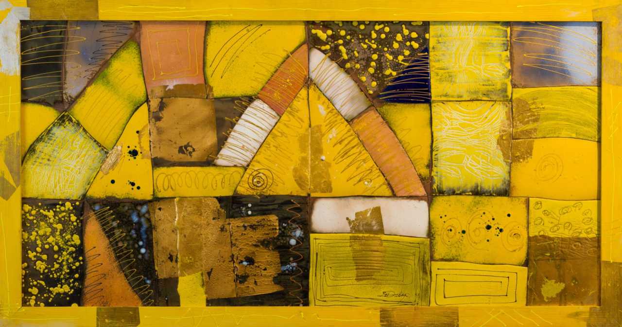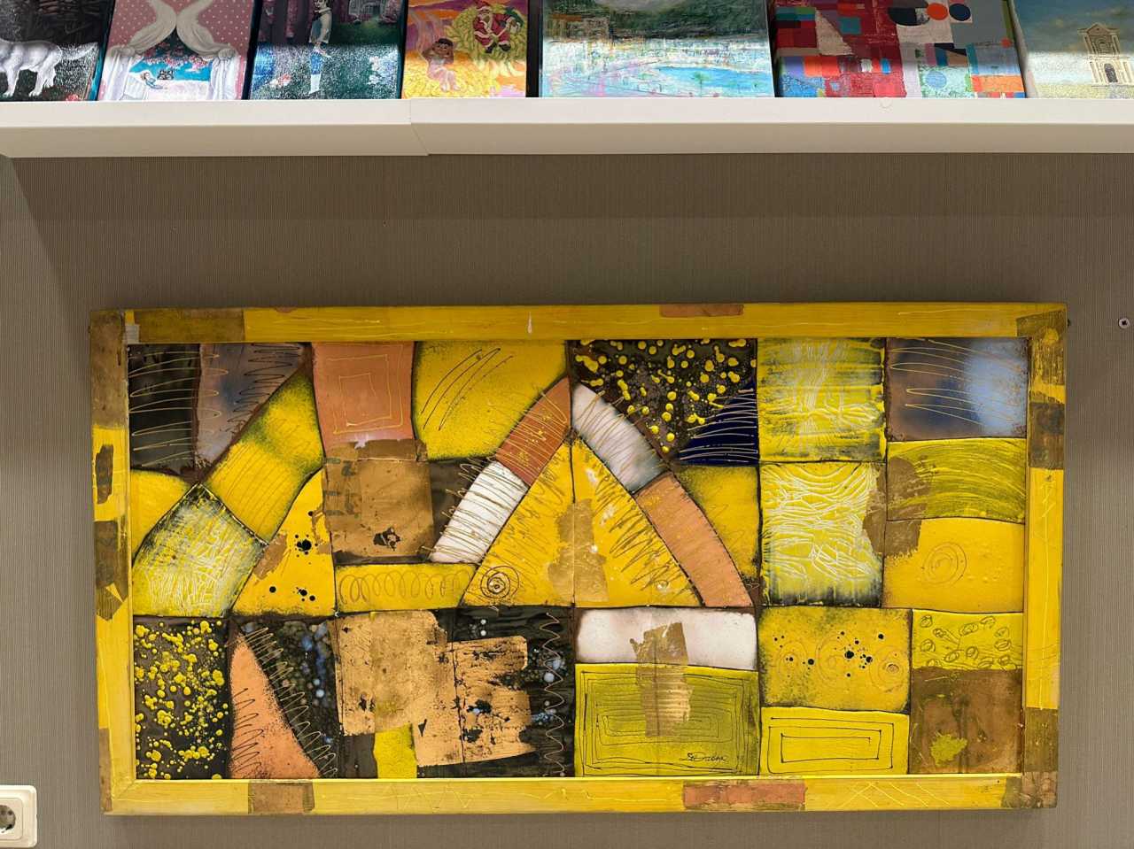 Author: Dina Dubina, Joy, enamel on copper, size: 62 x 120 cm, framed size: 71 x 129 cm, year of 2015