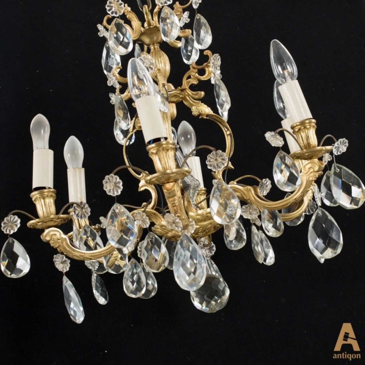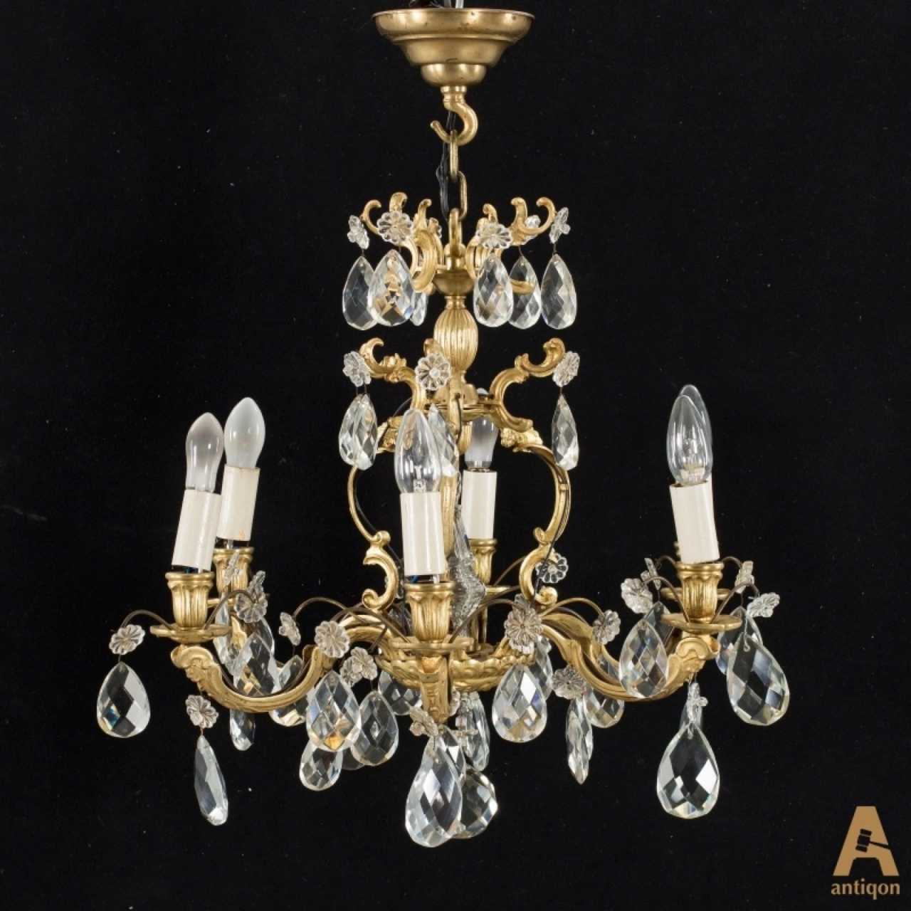 Six-candle chandelier in Rococo style. Europe. First half of 20th century Bronze glass 20th century
