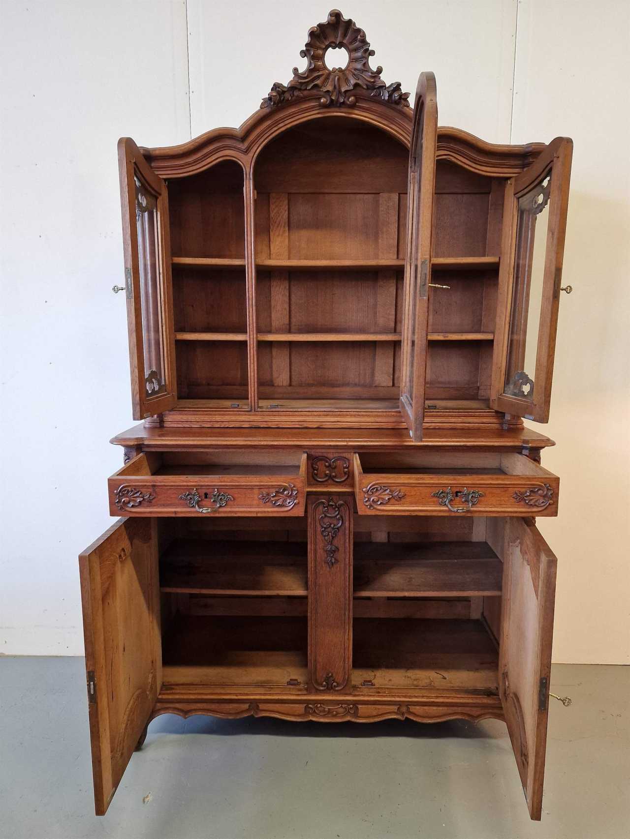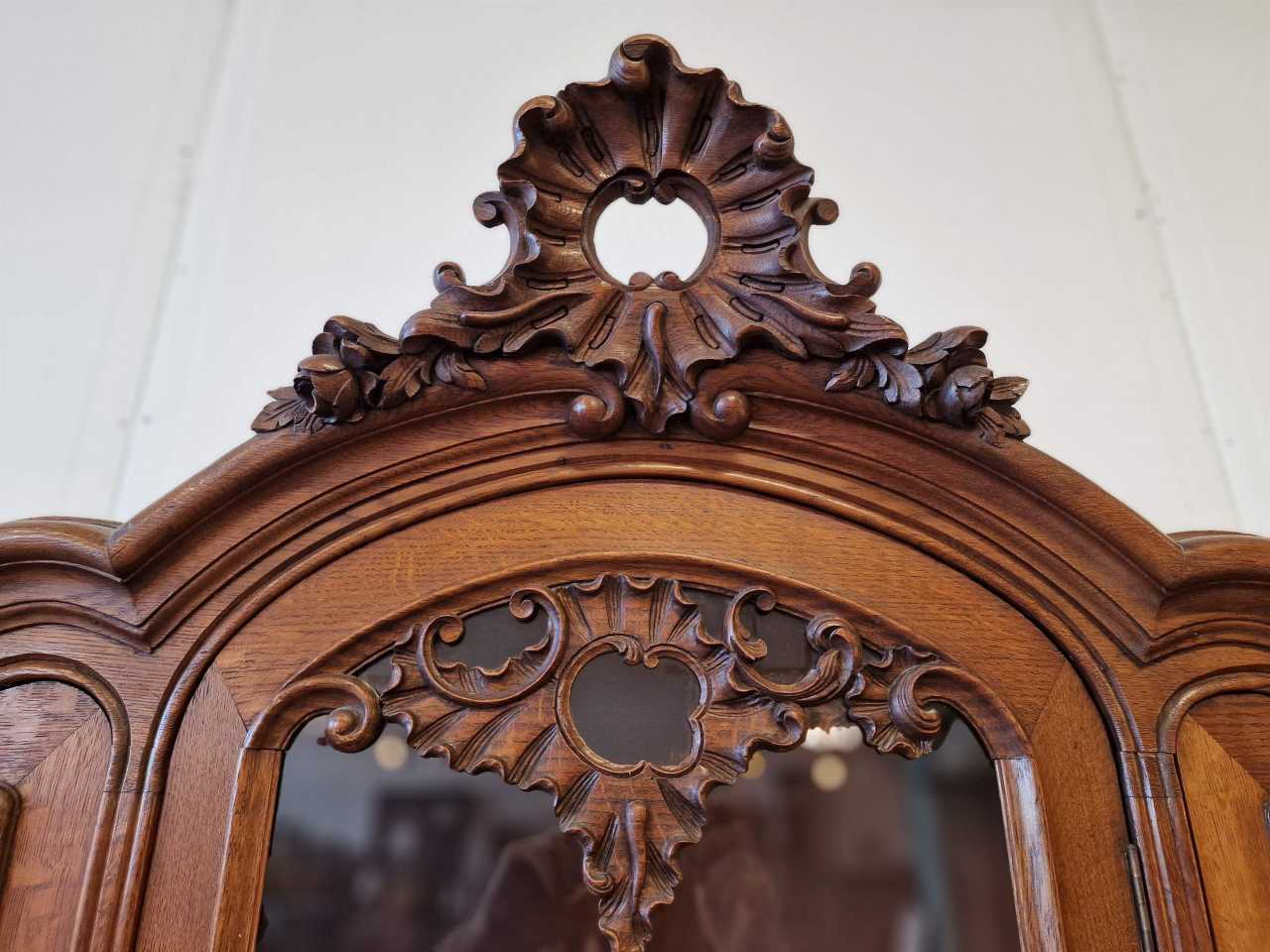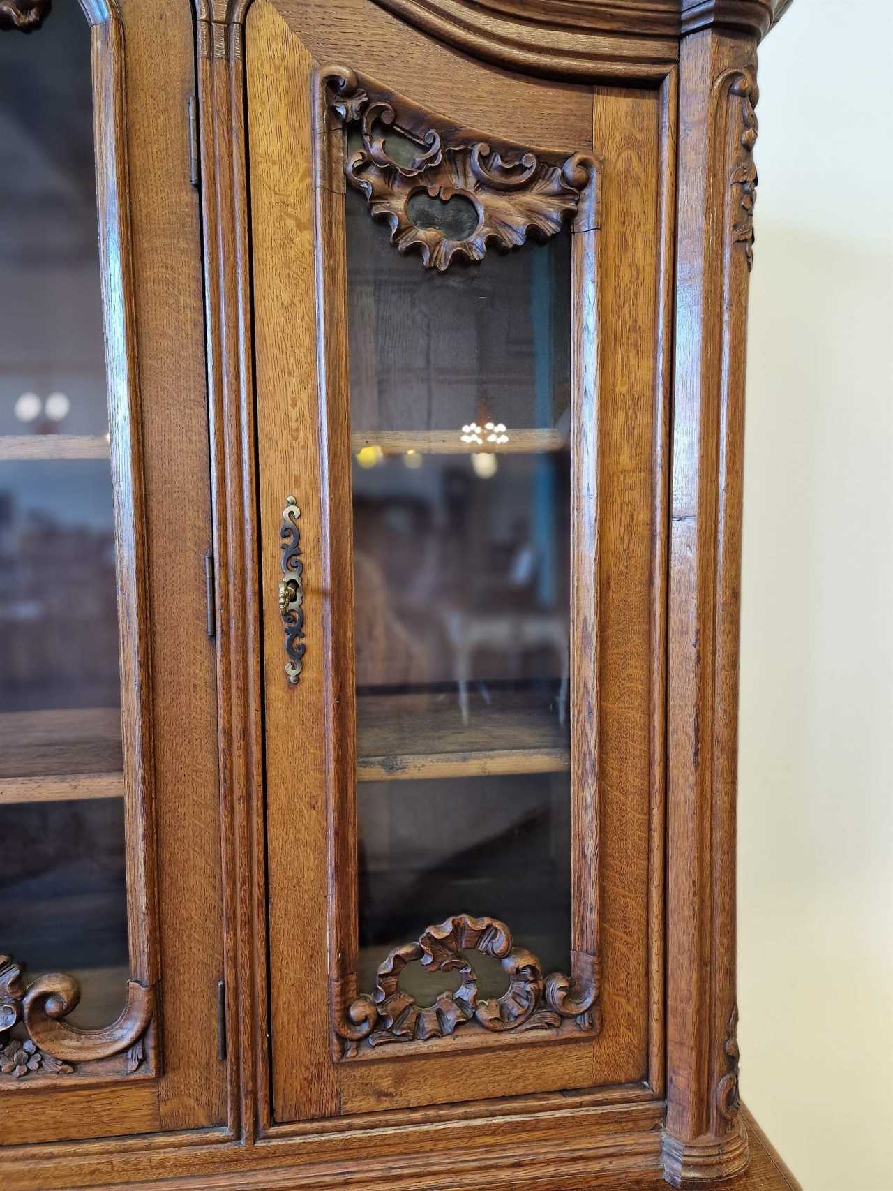 Beautiful oak display case.Beautiful carvings, oak.France.1920s.Dimensions: height 231cm; length 140cm; depth 57cm
