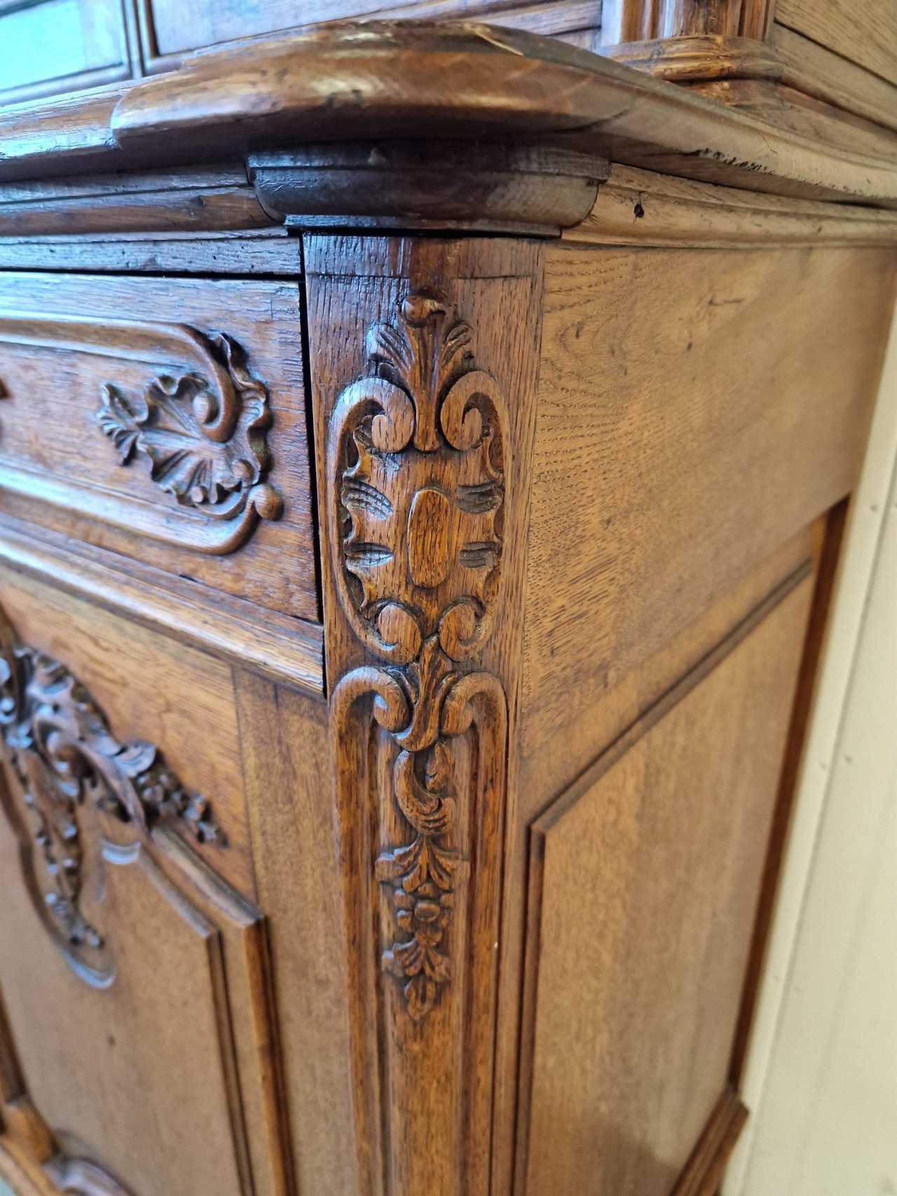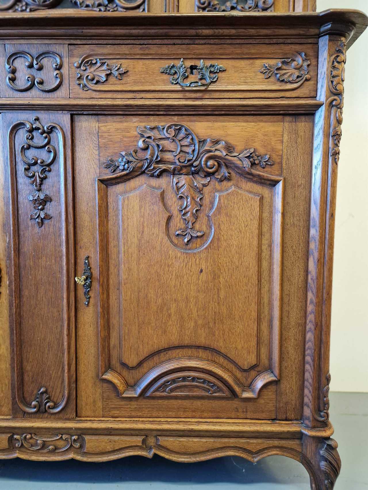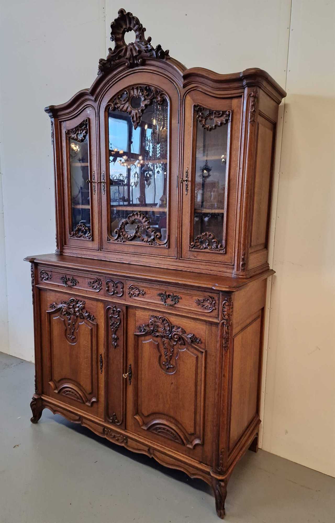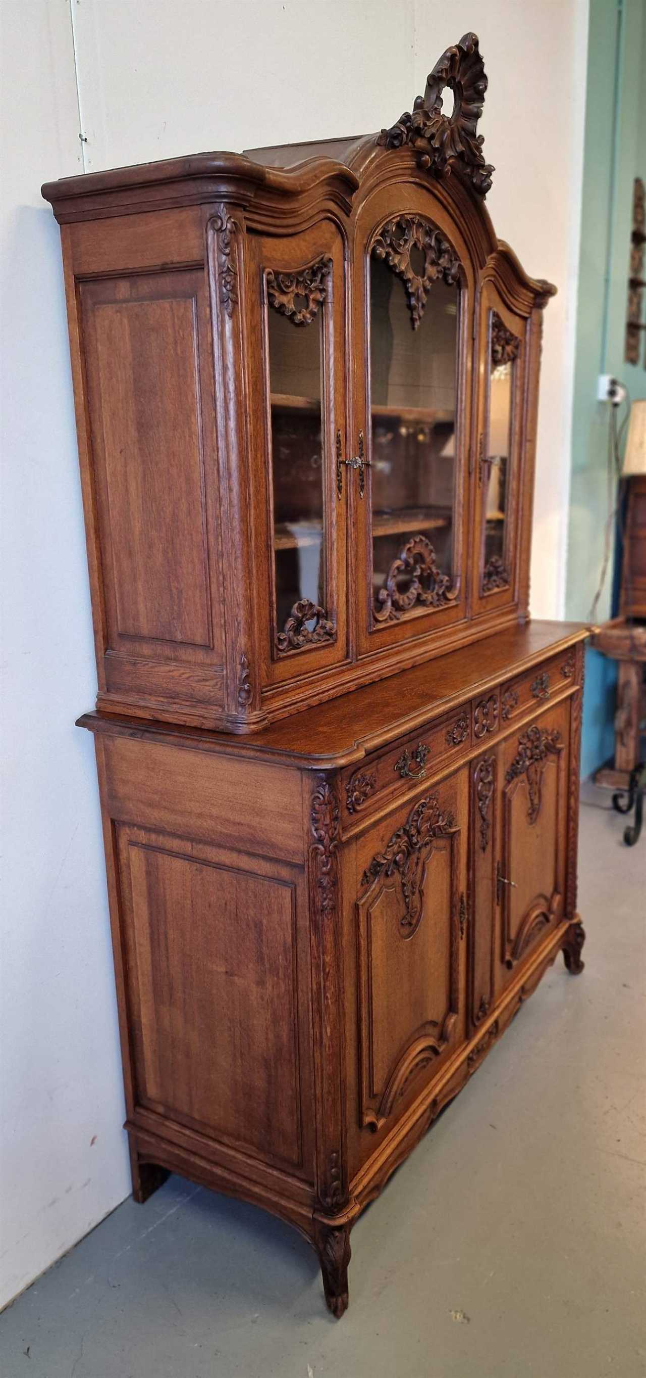 Beautiful oak display case.Beautiful carvings, oak.France.1920s.Dimensions: height 231cm; length 140cm; depth 57cm