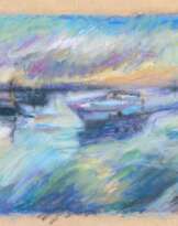 "Тихий вечер" Пезаро, Италия. Масляная пастель на тонированой бумаге