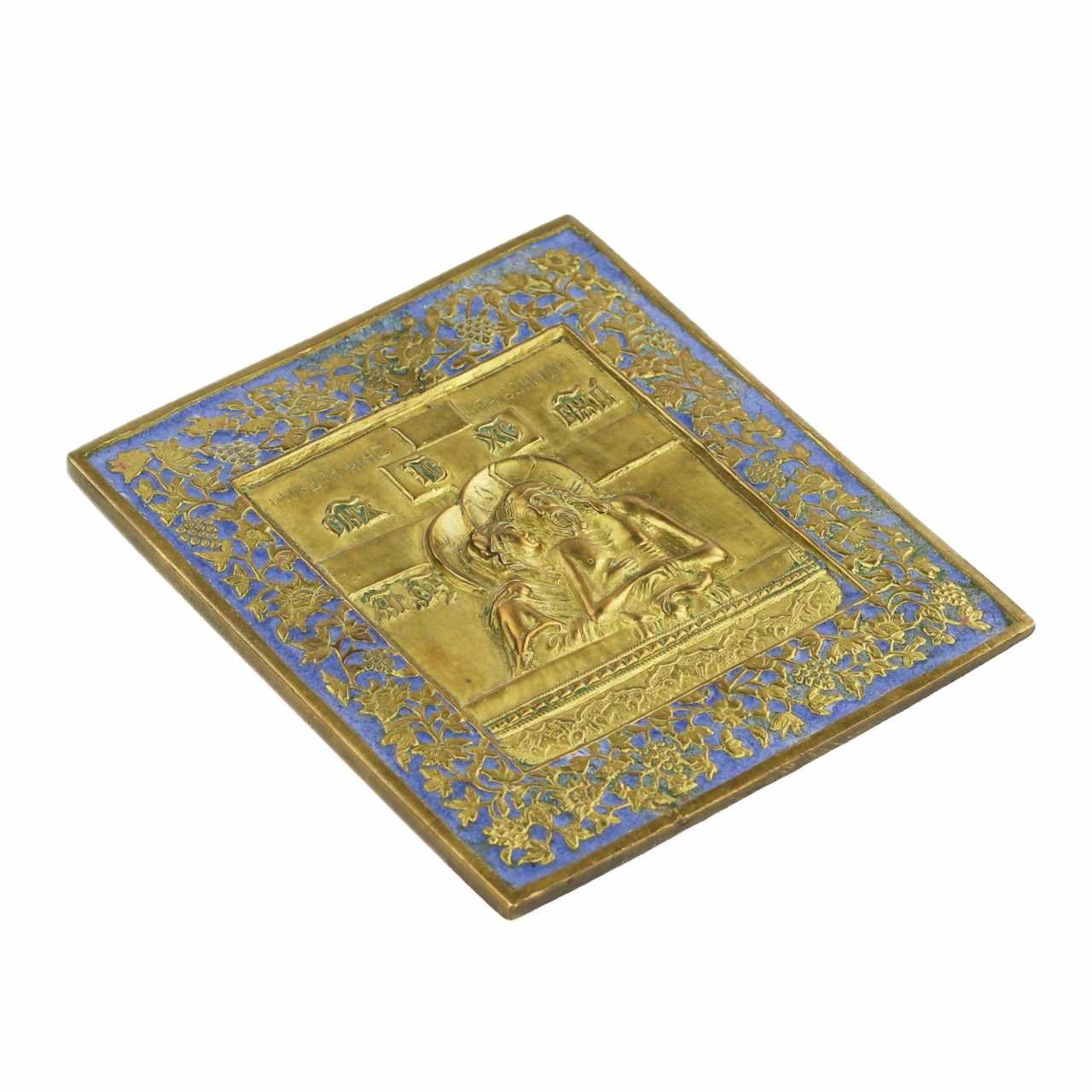 DO NOT WEEP FOR ME MOTHER CAST BRASS ICON WITH ENAMEL RUSSIA MID-19TH CENTURY Brass with enamel 19th century