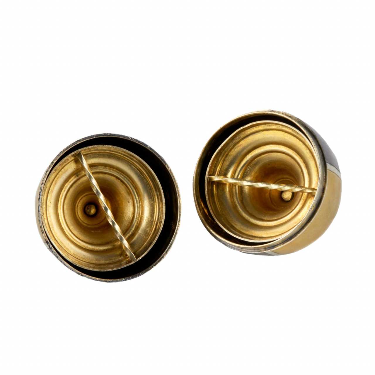 Poached egg made of silver with gilding. The everyday item originally includes in one Easter volume - a pair of integral egg holders. Lapidary gilding of the slices allows you to combine patterns, including staggered patterns, echoing the motifs of the Italian Renaissance. Erik August Kollin. On the inner spheres of the egg there are hallmarks: EK. 84 with the coat of arms of St. Petersburg in an oval. Eric Colleen is one of the Faberge masters. Total weight: 109 gr.