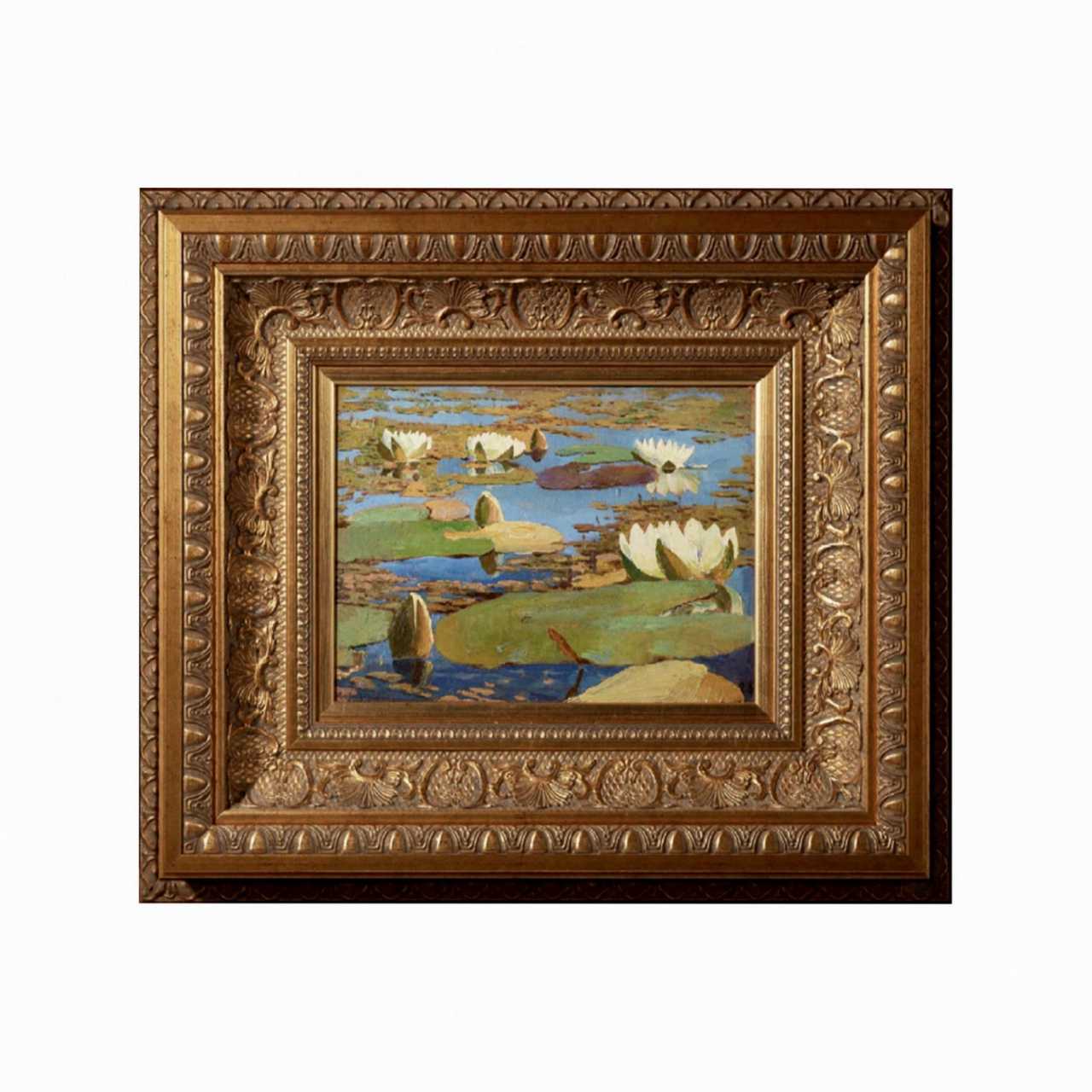 Painting Water lilies (Nenyufars). In the lower left corner is the signature of Lishchenko D.A., in the lower right corner is the number 25. Size without frame: 22 x 29 cm.