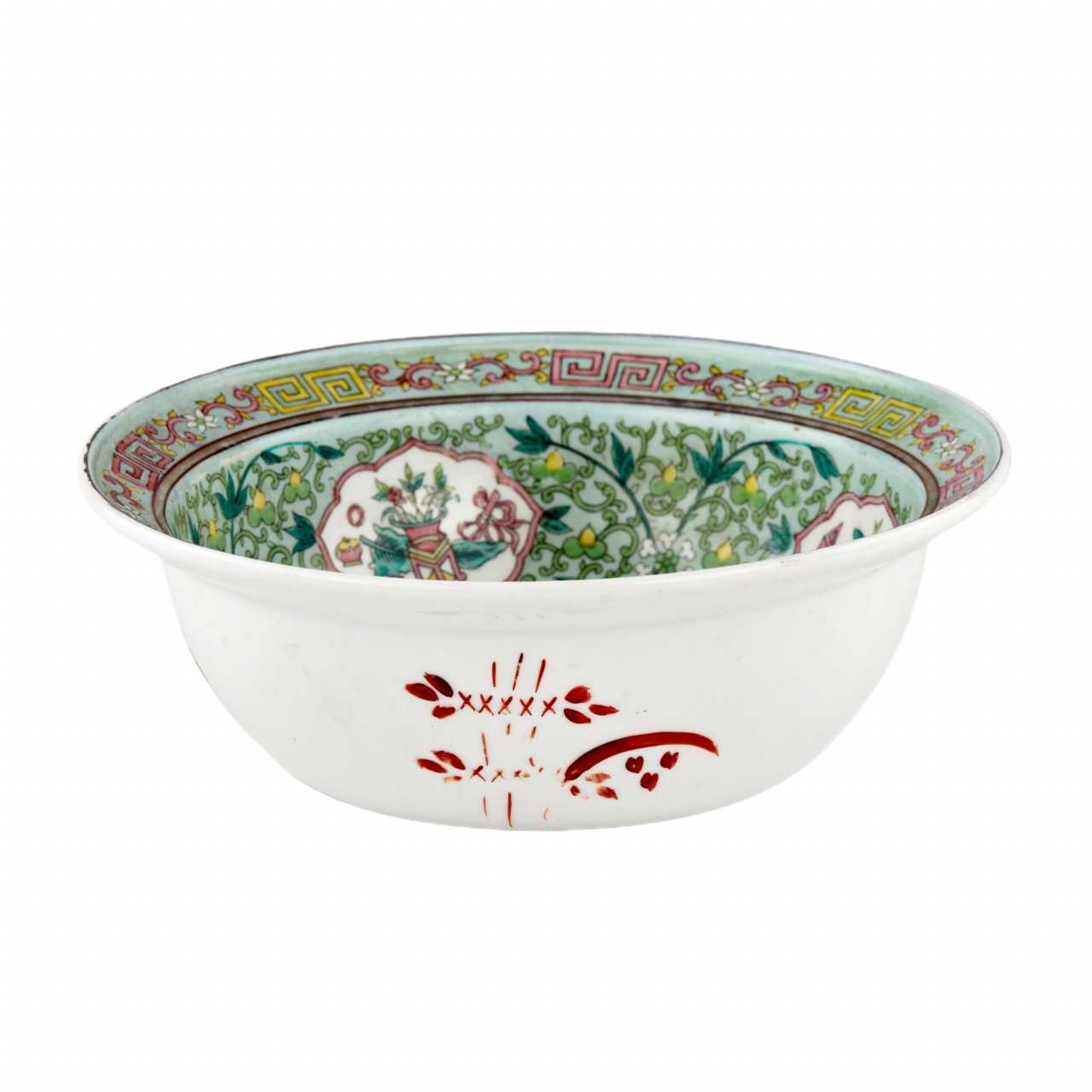 Chinese dish from the Gardner factory. Probably from the Kuznetsov period, when the factory produced products for the eastern market. In the form and motifs of painting, the dish exactly imitates Chinese prototypes. Uses soft colors. Printed overglaze mark on base. Diameter: 25.5 cm.