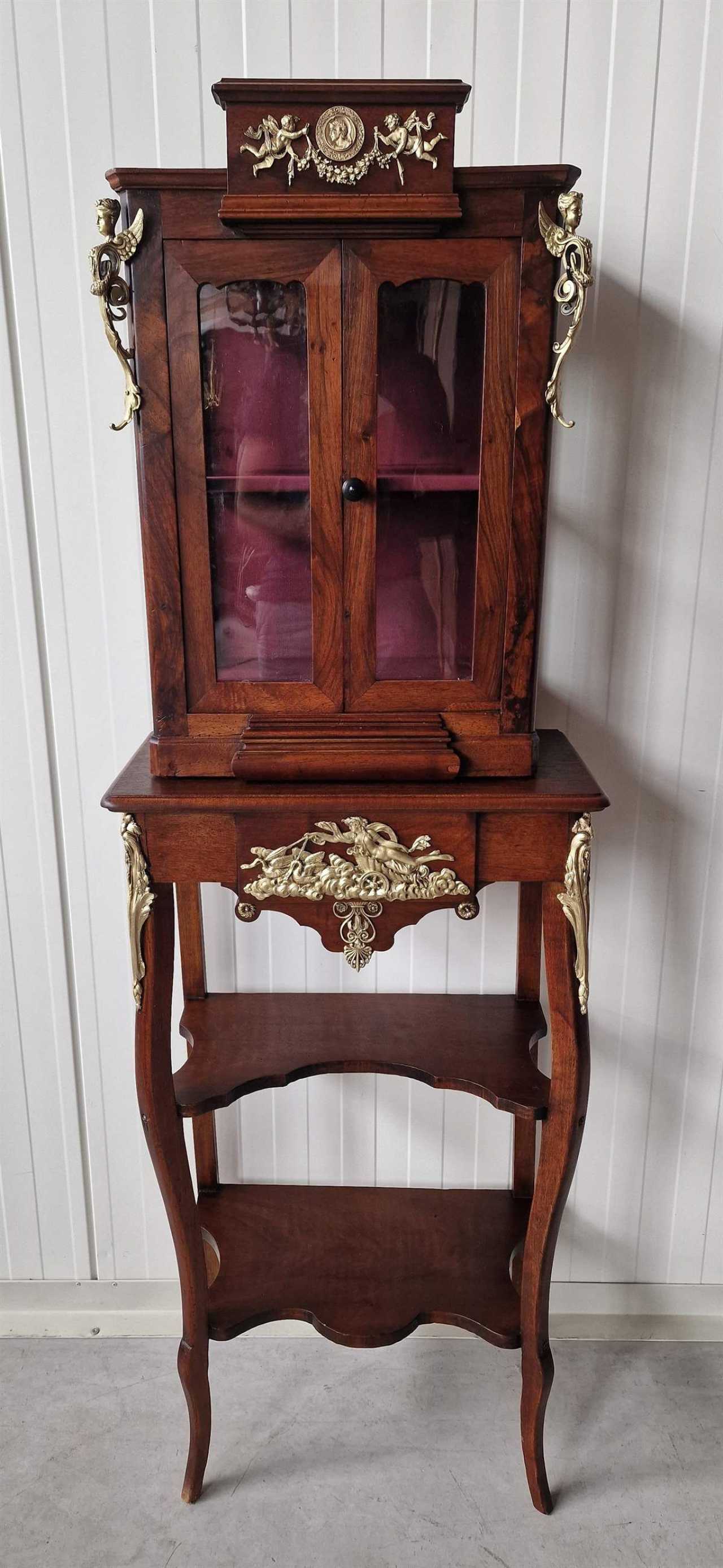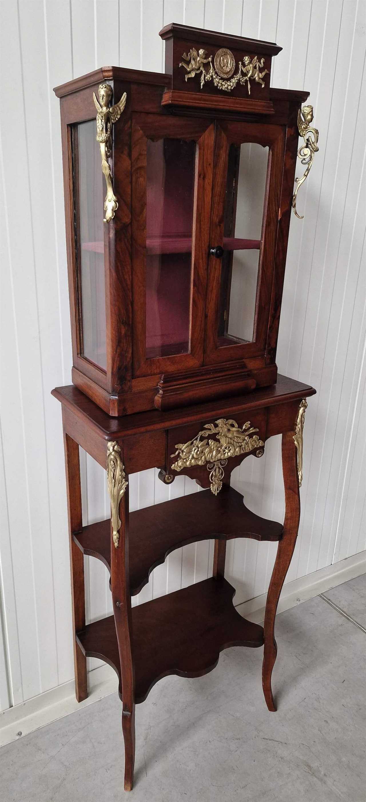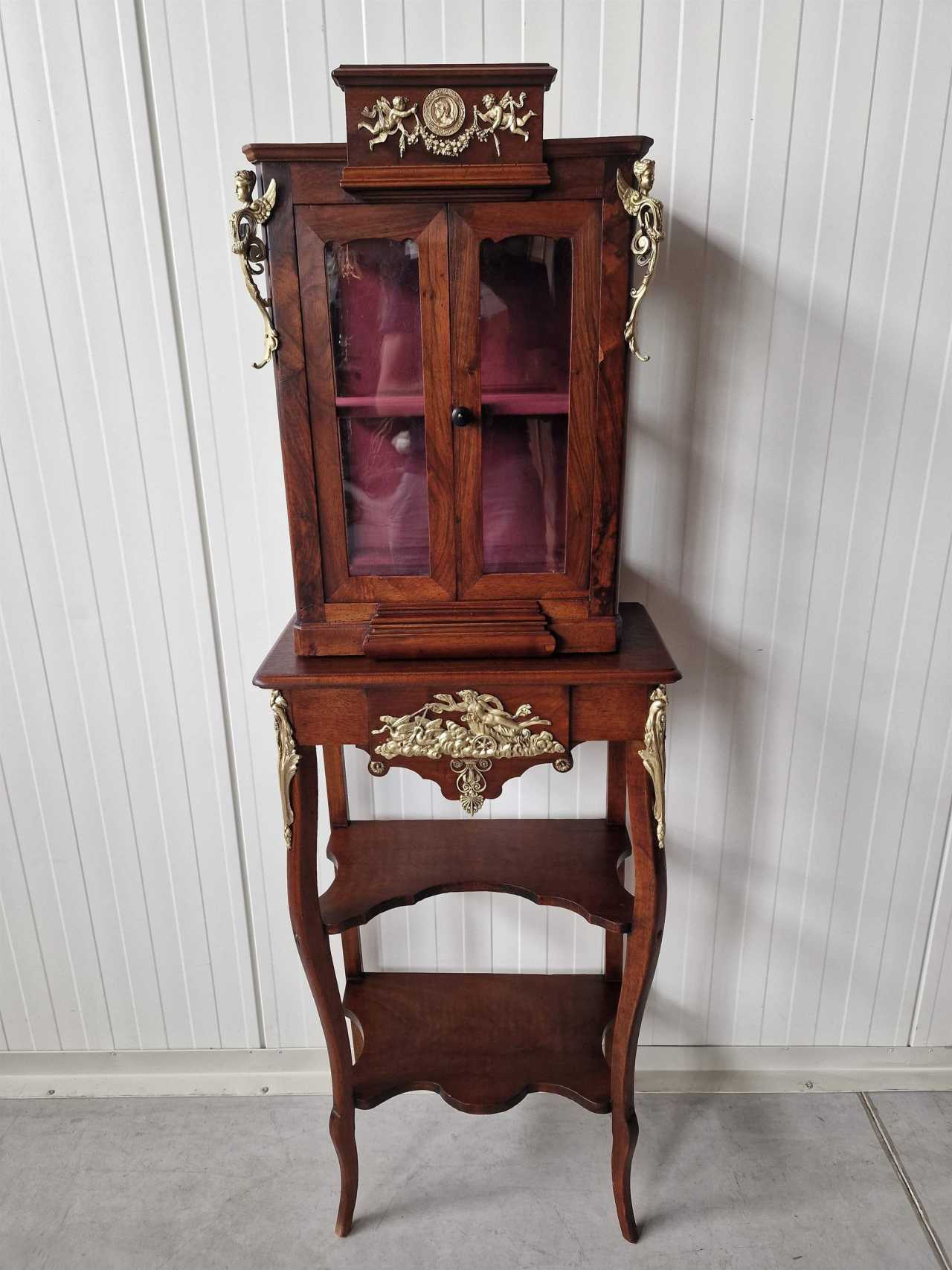 Restored antique display case with beautiful bronze elements Walnut Eclecticism 19th century