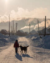 Эта женщина содержит много животных. Козы, собаки, кошки и домашние птицы. Она их очень любит и выходит с ними на выпас. Я проходил мимо и услышал, как она разговаривает с козами. Остановился и мы разговорились. Во время разговора, я сделал несколько снимков.