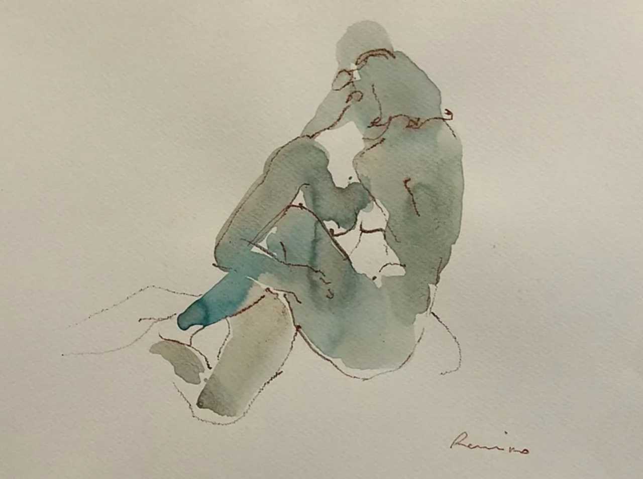 Serhiy Reznichenko Watercolor Nude Sketch 21st Century Paper 21th century