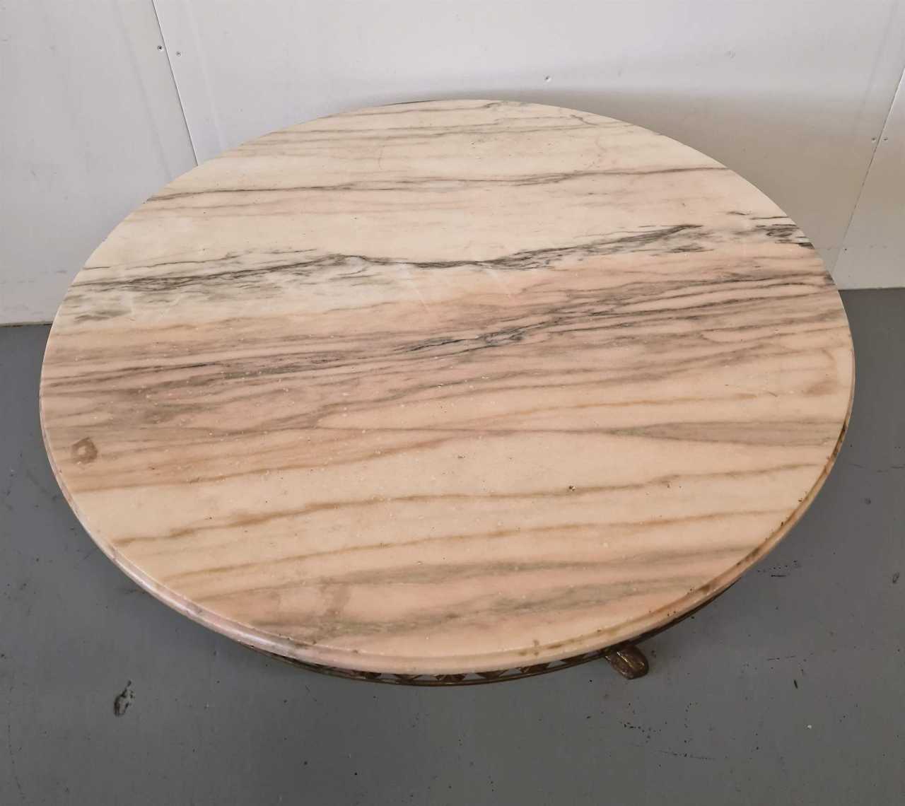 Coffee table with marble top.France.1970s.Dimensions: height 50cm; diameter 90cm.